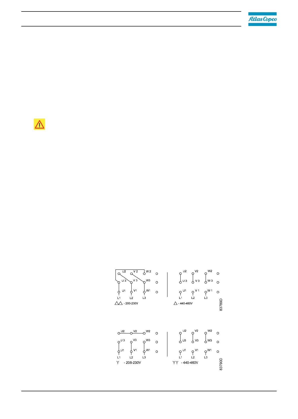 The compressors leave the factory wired for 230 V. If the compressor is to be used on 460 V, rewire