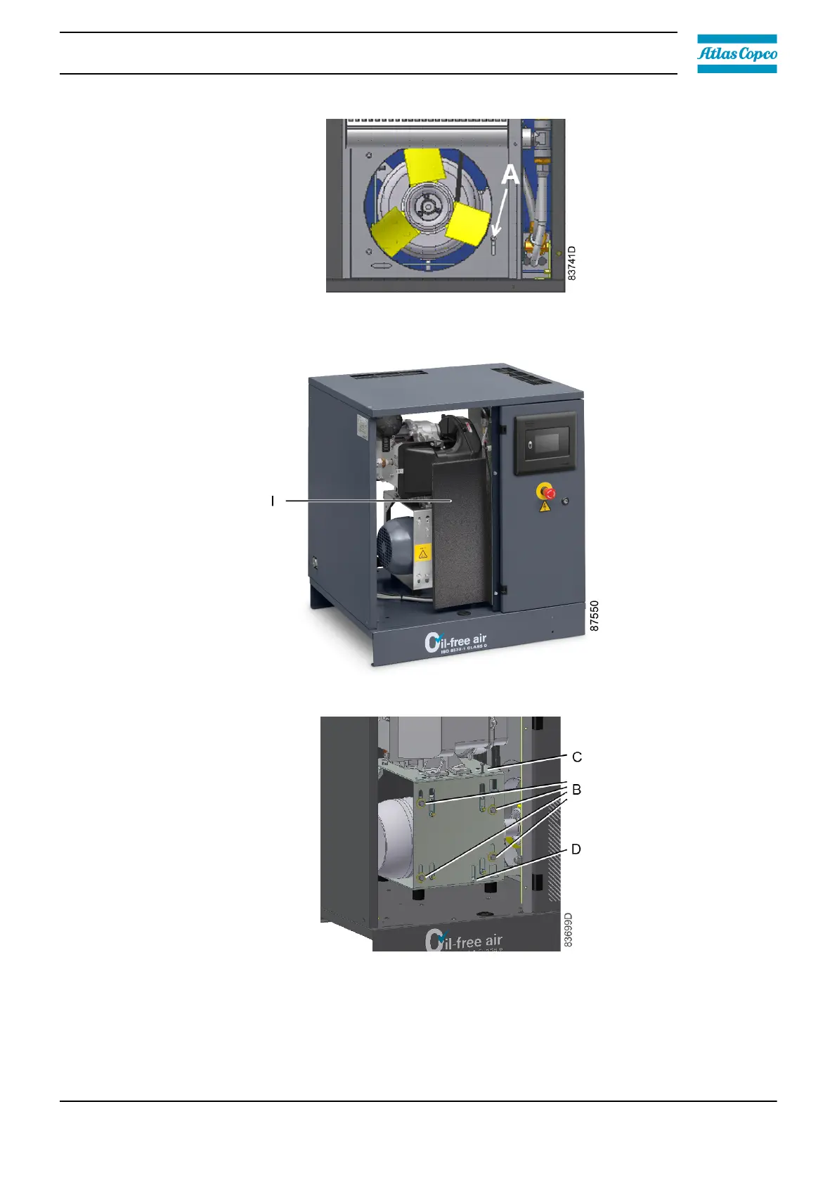 9. Set the tension of the belt(s) by adjusting bolt (C) out. Refer to the label on the motor plate for