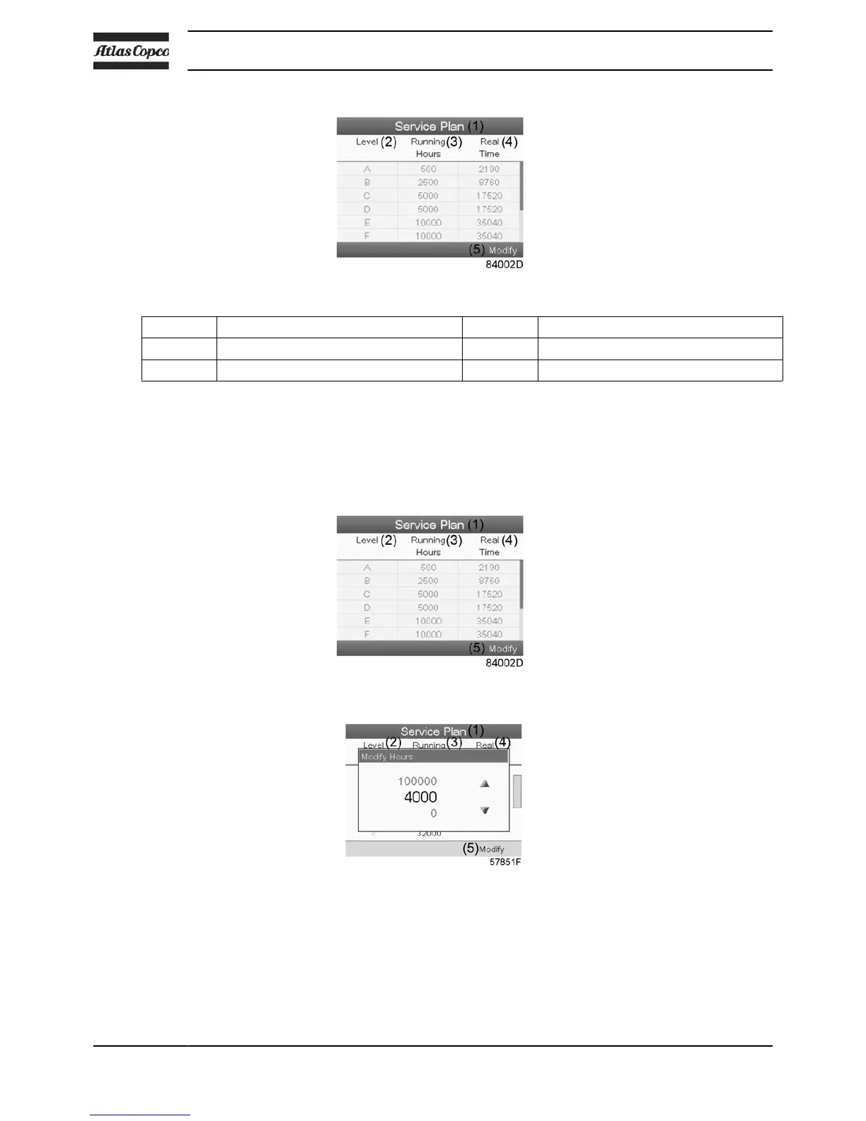 Note: Running hours can be modified in steps of 100 hours, real time hours can be modified in
