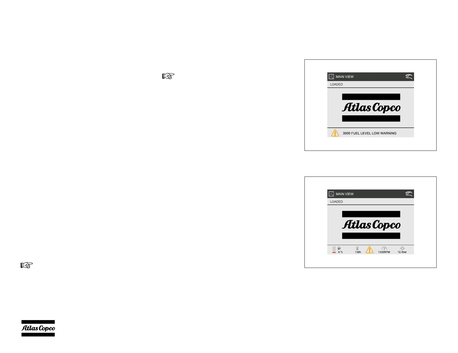 If an alarm becomes active, for example a Low Fuel Level