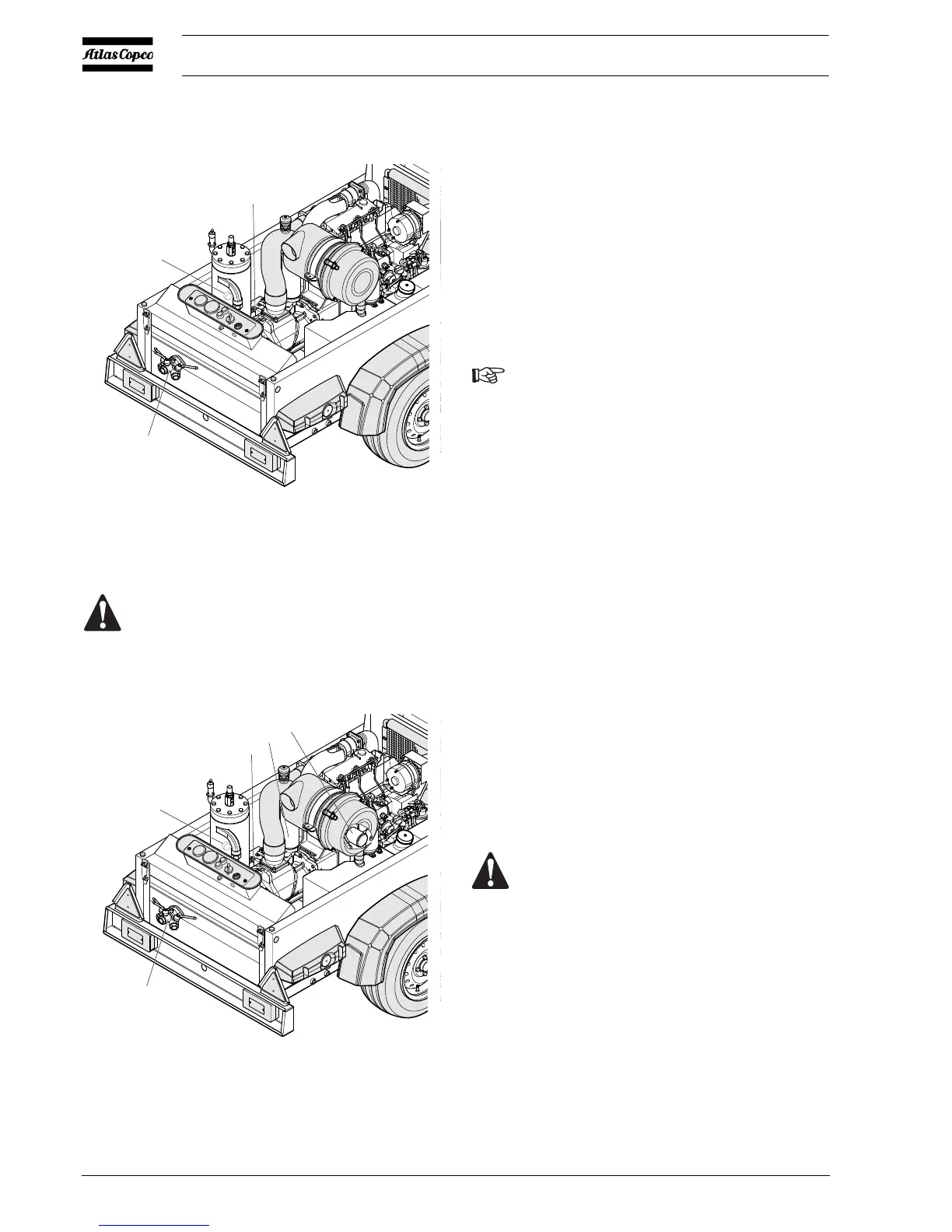 the automatic blow-down valve. Unscrew the oil filler plug (2)