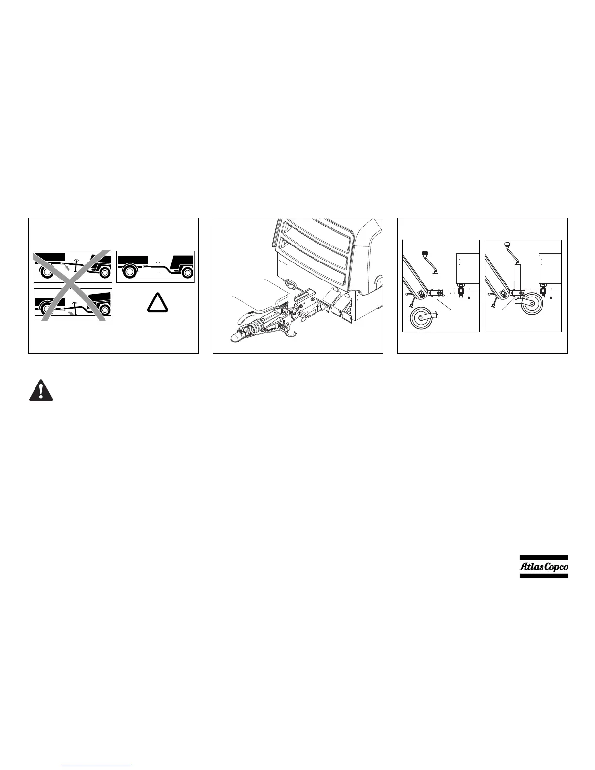 Label on towbar, towing instructions Fixed towbar with support leg and brakes