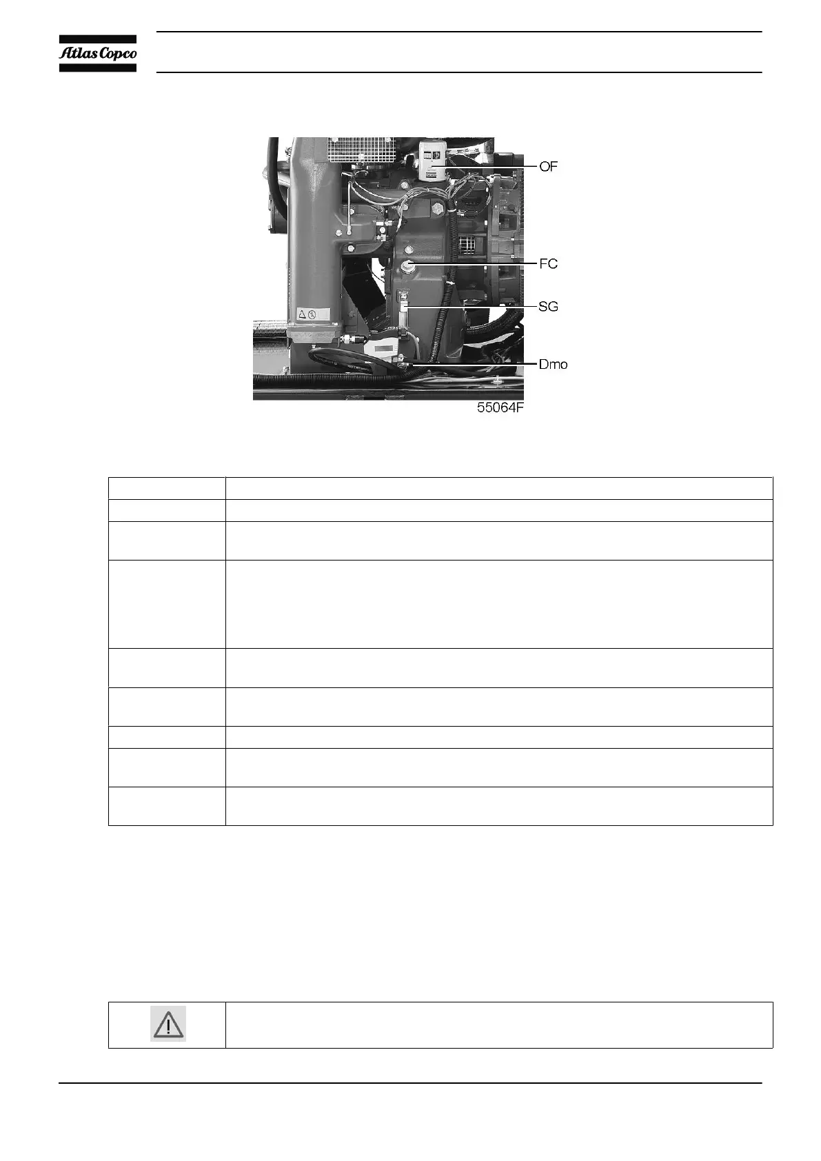 3 Remove filler plug (FC). Drain the compressor sump by opening drain valve (Dmo). Close