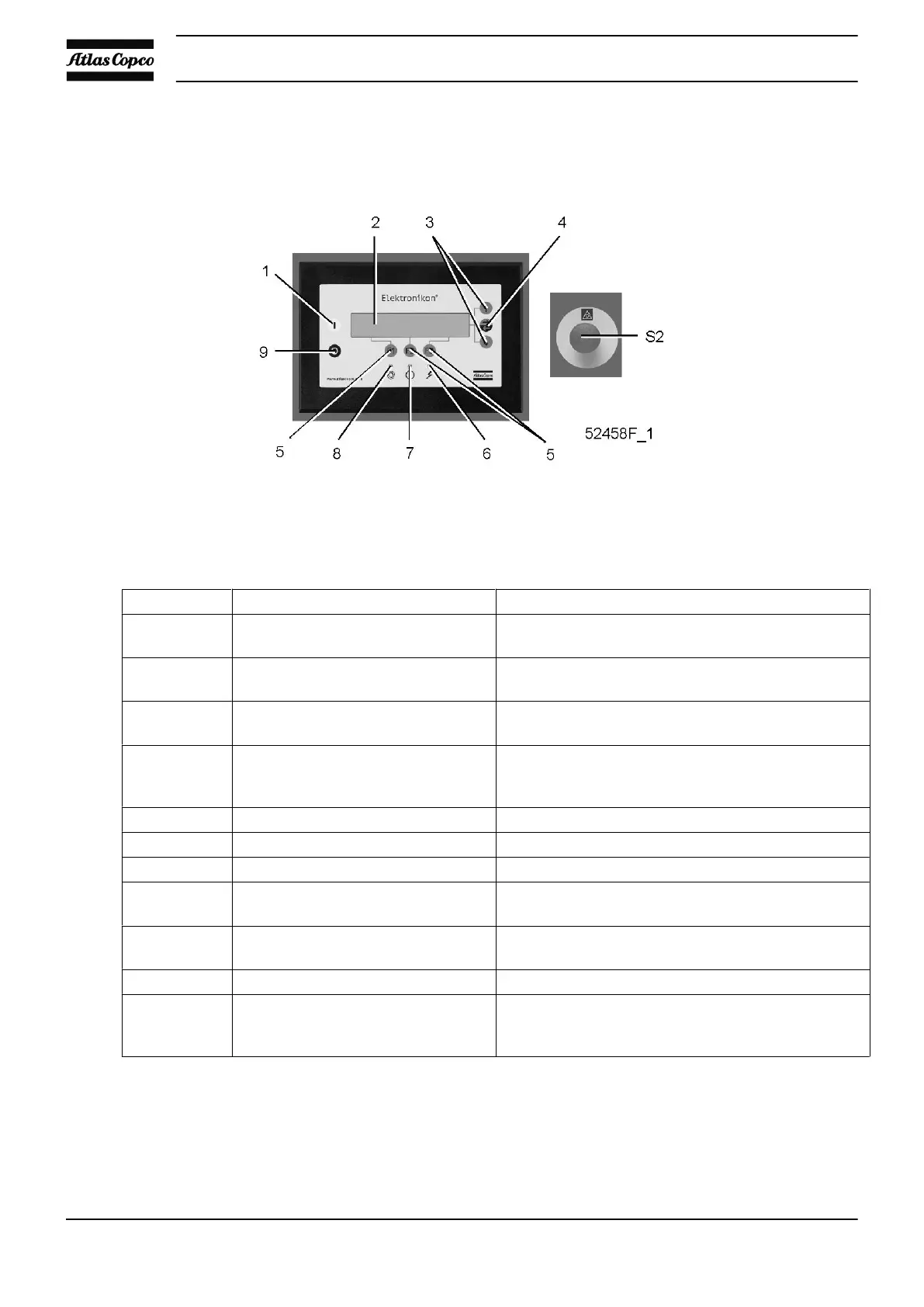S2 Emergency stop button Push button to stop the compressor immediately in the