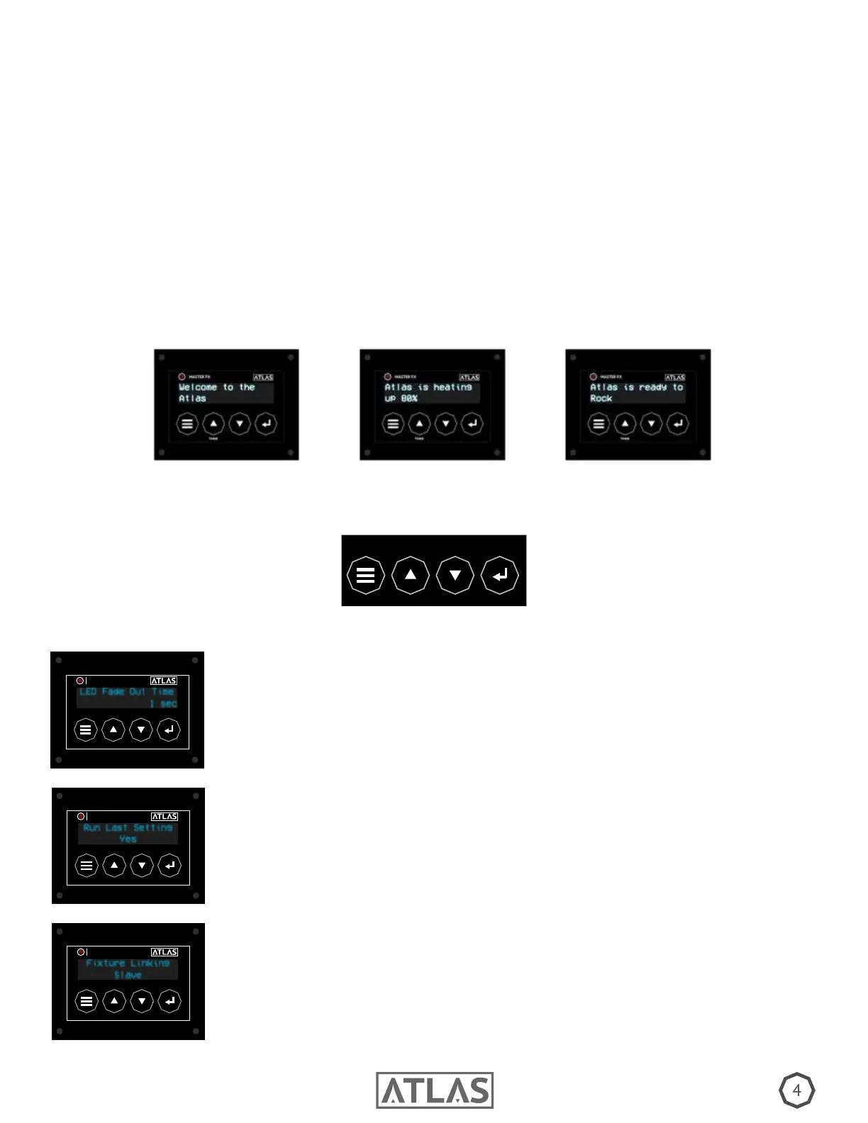 FIXTURE LINKING: When operating the Atlas manually or with wireless remote,