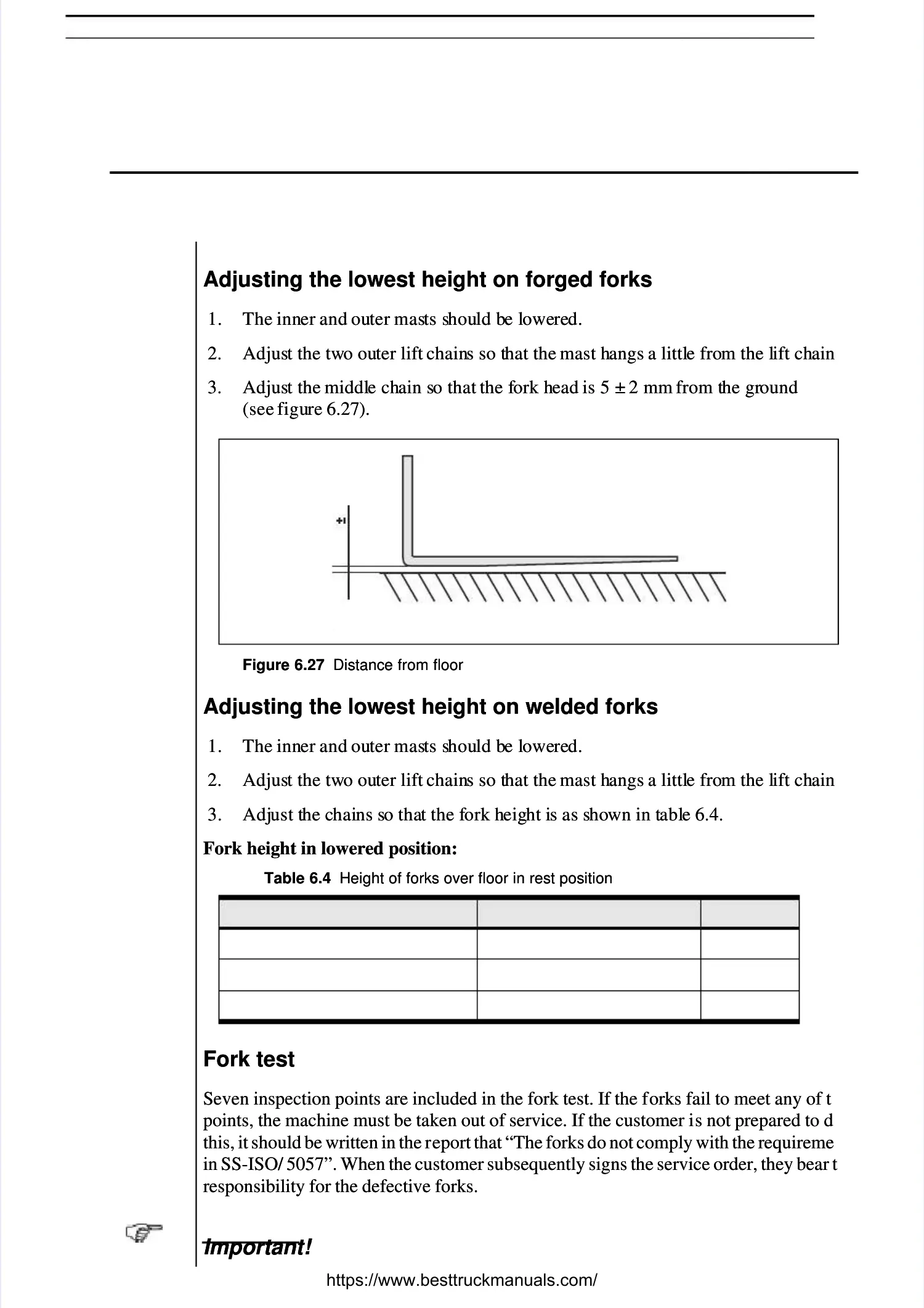 Table 6.4Table 6.4 Height of forks over floor in rest positionHeight of forks over floor in rest position