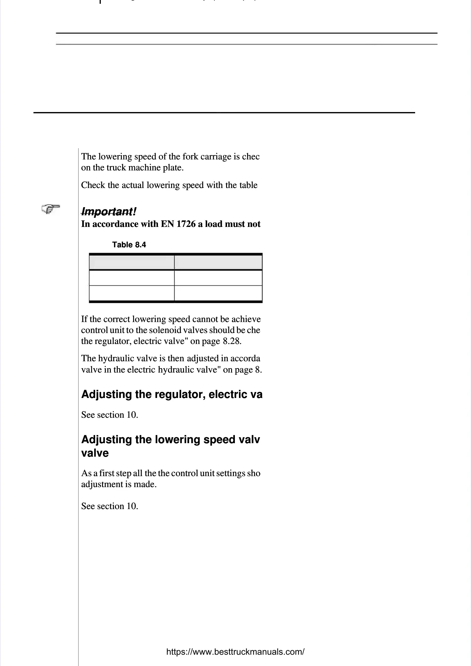 The hydraulic valve is then The hydraulic valve is then adjusted in accordance withadjusted in accordance with "Adjusting the lowering speed"Adjusting the lowering speed