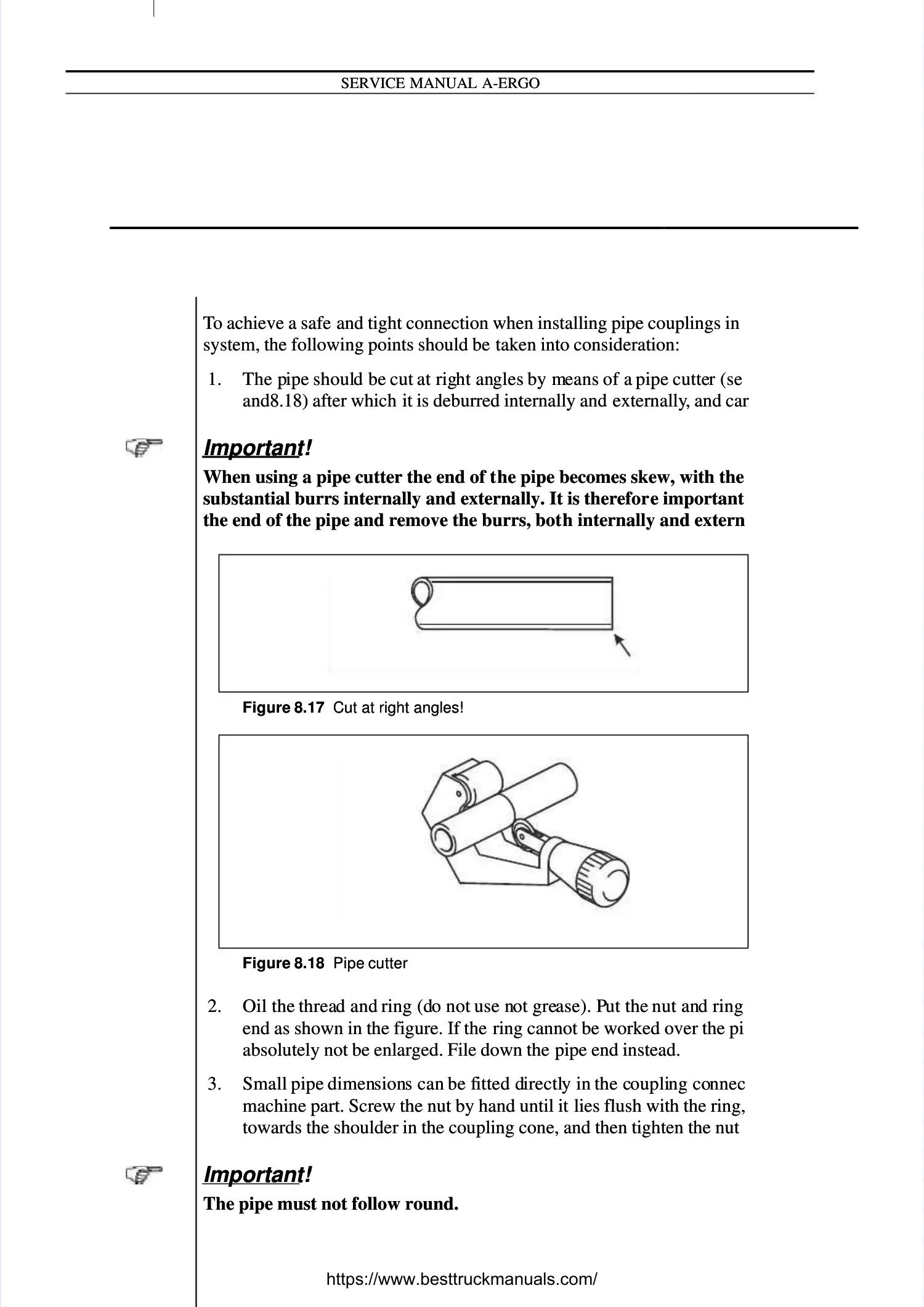 1.1. The pThe pipe ipe shoulshould be d be cut cut at rigat right anht angles gles by mby means eans of a of a pipe pipe cuttecutter (ser (see figue figurere8.178.17