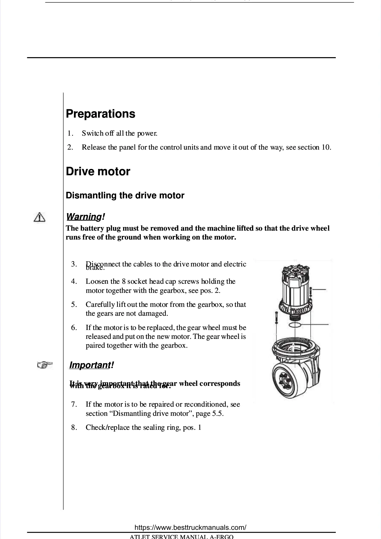 sectionsection “Dismantling drive motor”, page 5.5“Dismantling drive motor”, page 5.5..