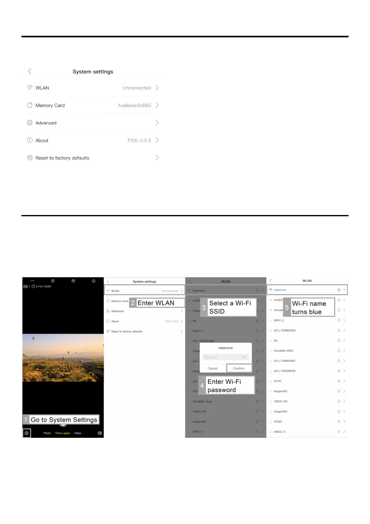 System Settings > WLAN > Select a Wi-Fi SSID > Enter Wi-Fi Password > Wi-Fi name turns blue