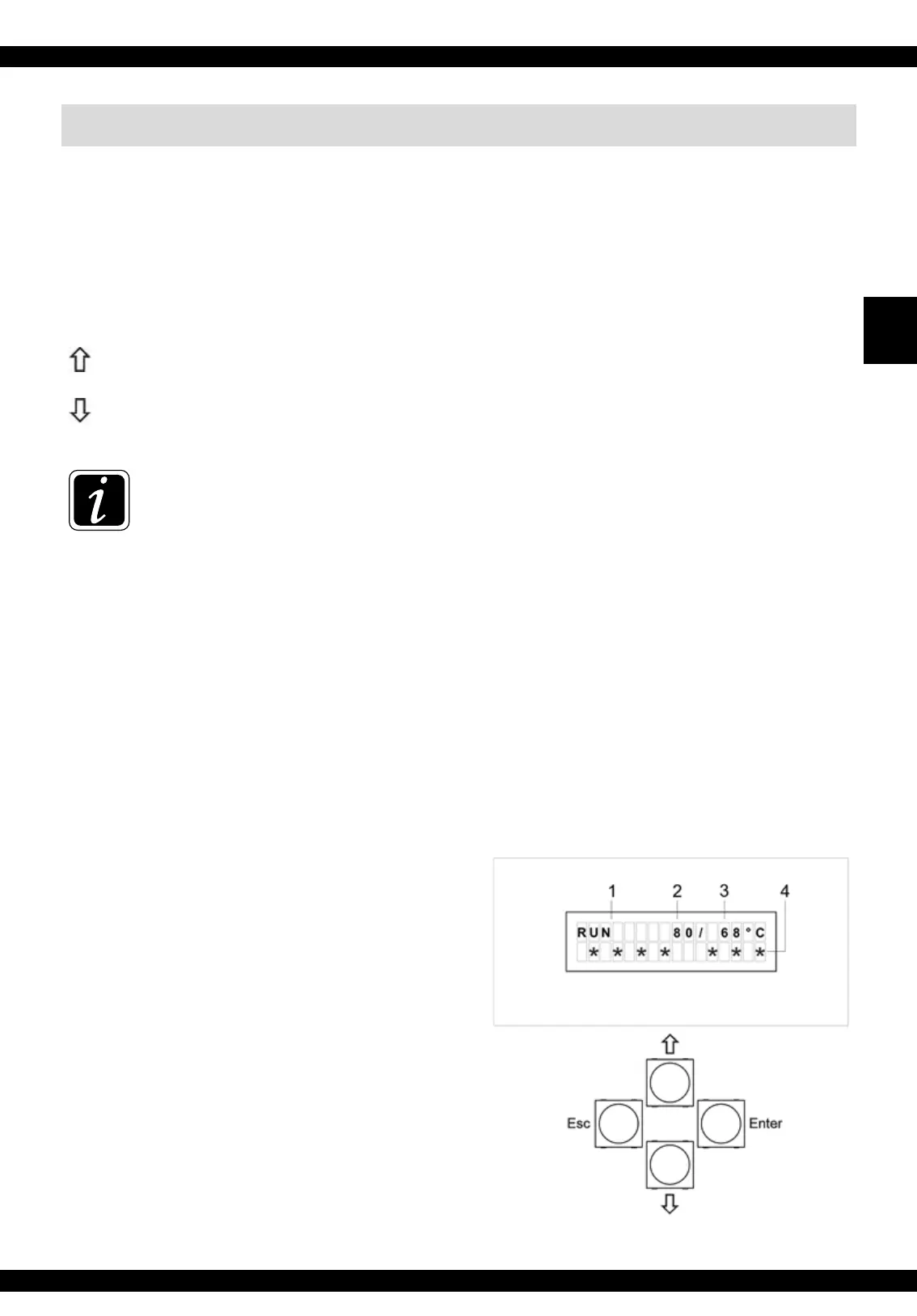 Up arrow - key for browsing in the menus or for increasing the value of a parameter