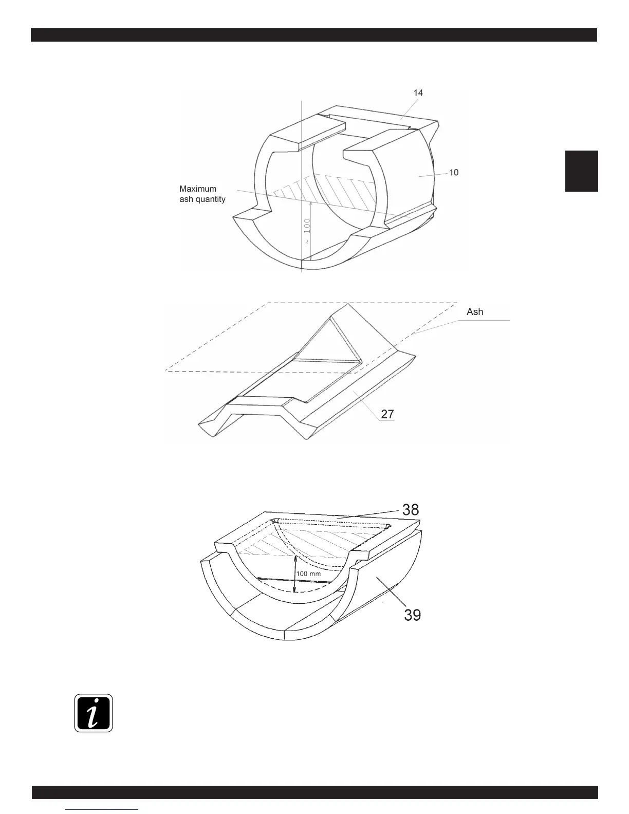 Maximum ash quantity – only up to the upper roofs edge level !