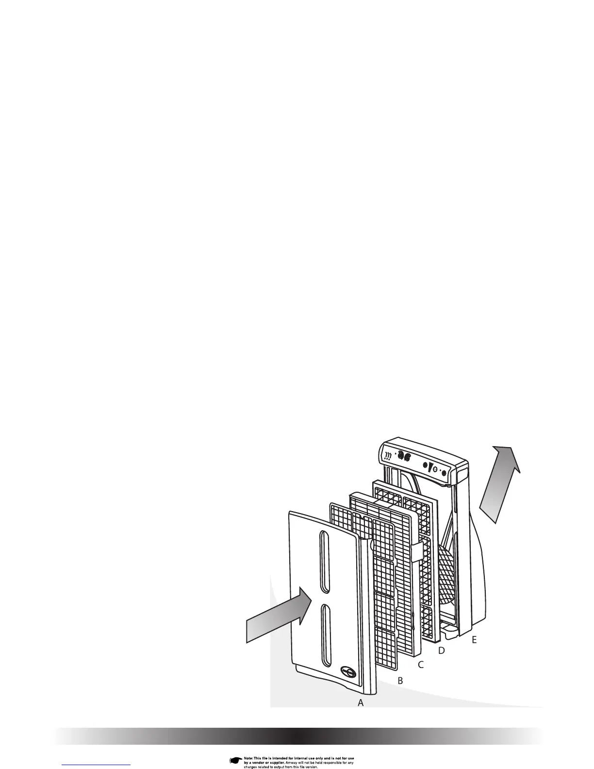 Air enters through the front cover (A) on the air purifi er. The pre-fi lter (B)
