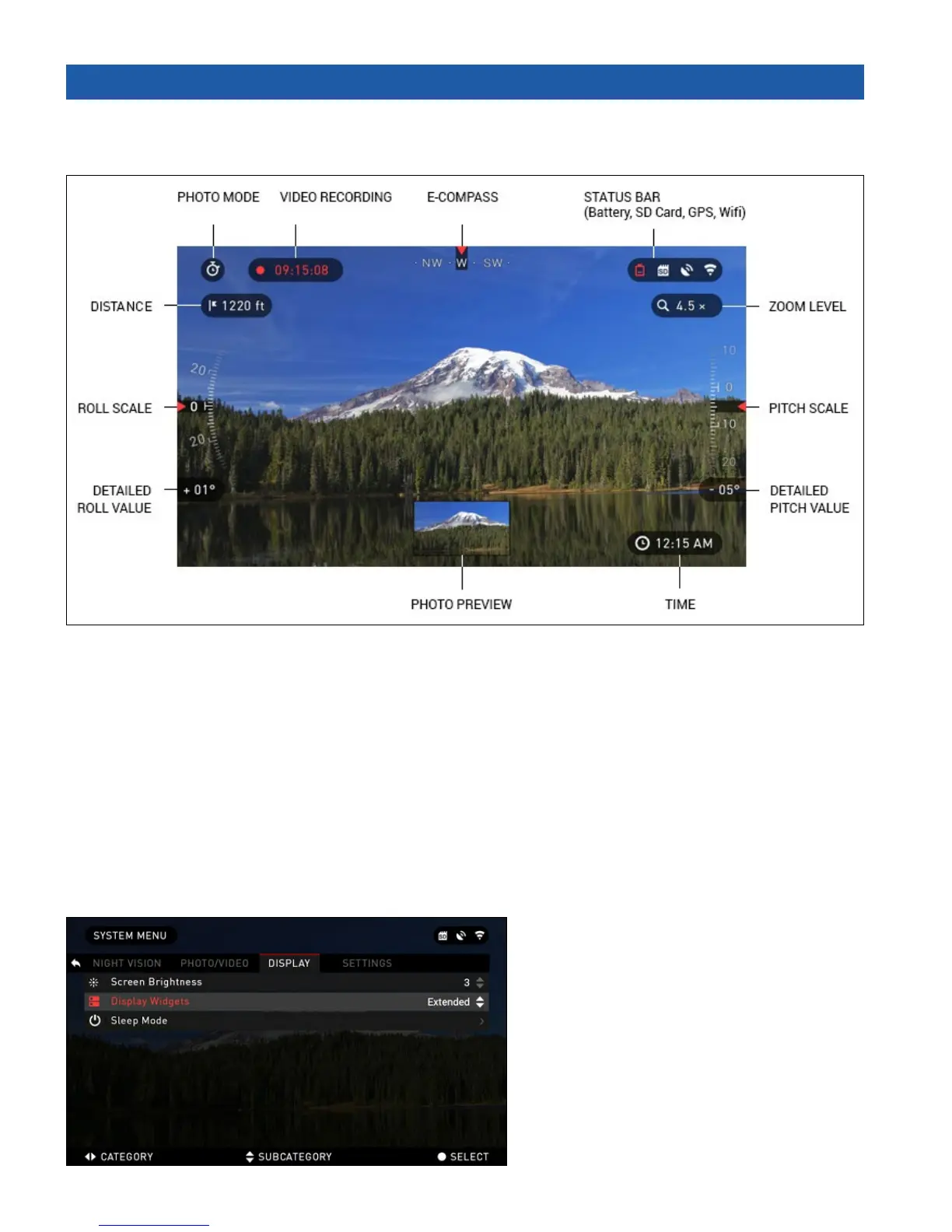 Pitch Scale shows binocular inclination based on internal 3D Gyroscope.