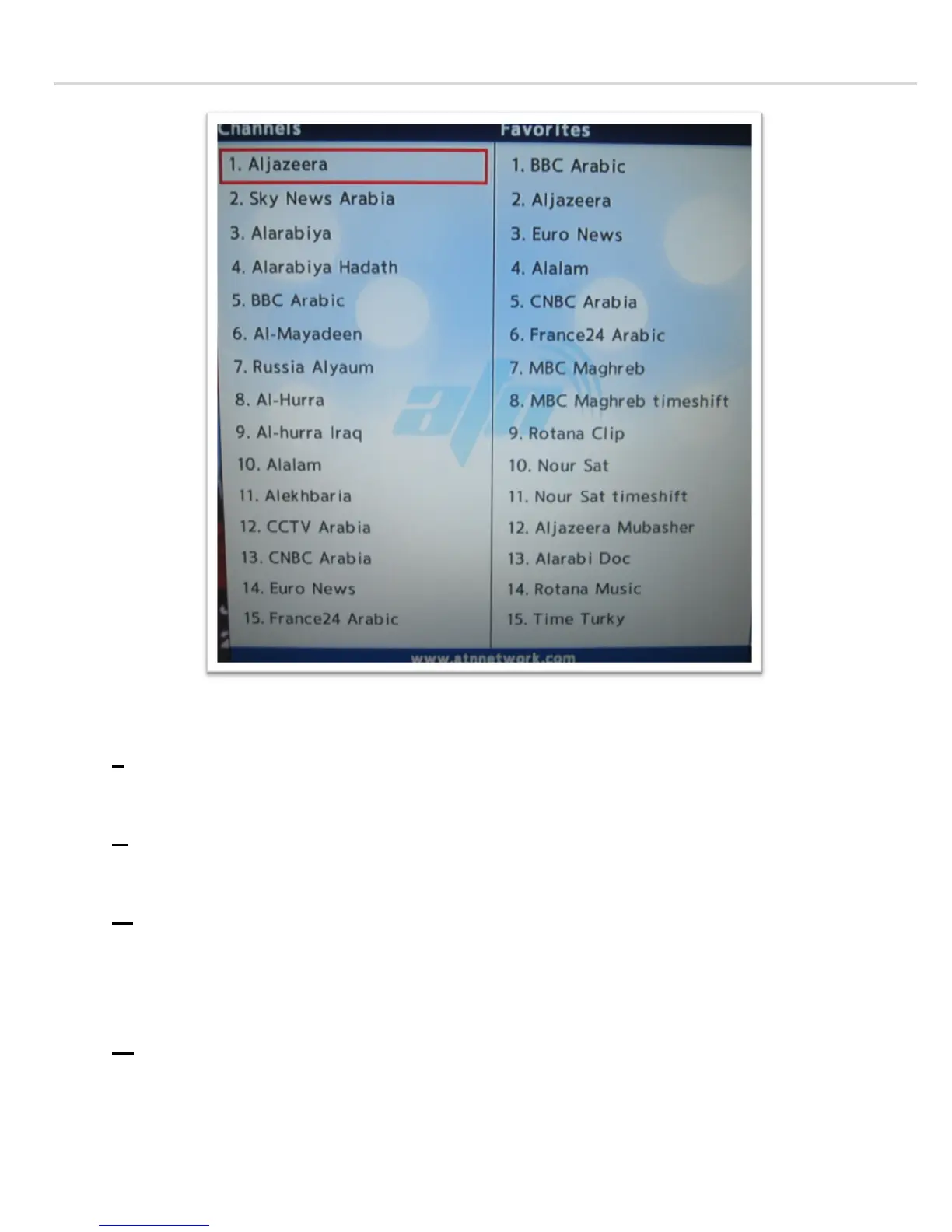 III- To move a channel up or down on the favorites menu, select the channel you want to move on the