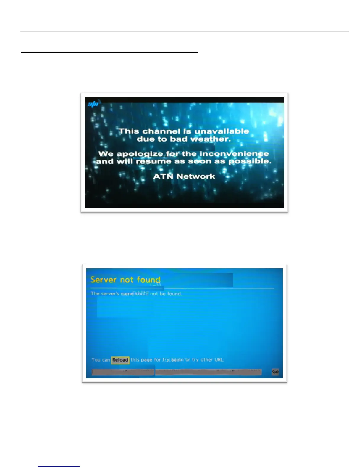 ATN XTV 131 - Troubleshooting Error Messages; Satellite Signal and Server Errors