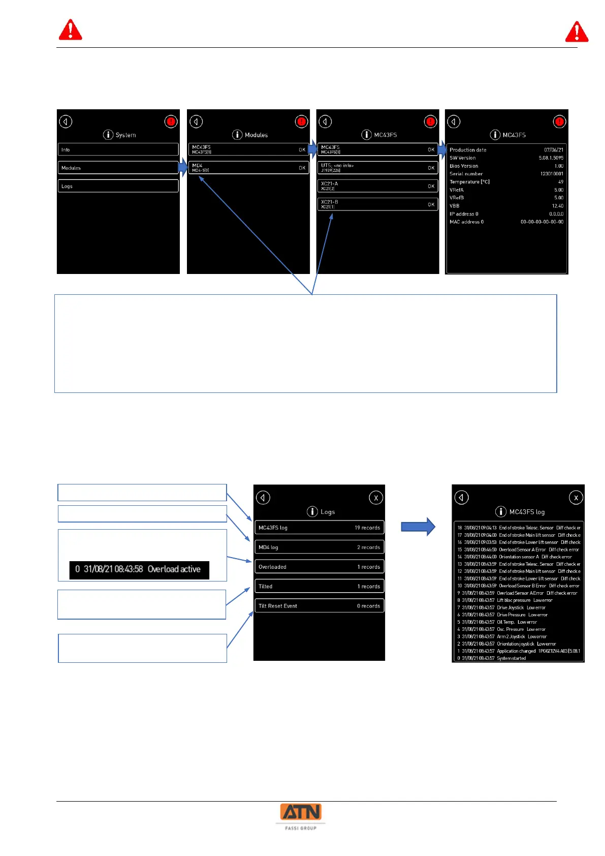 Logs : Records the errors and events (overload, tilt, tilt reset)