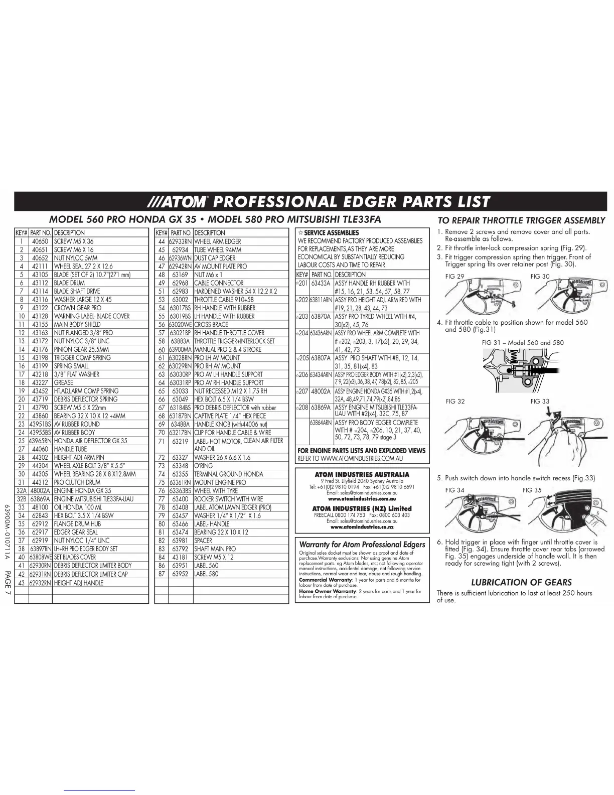 Atom 560 - Professional Edger Parts and Service Information; Edger Parts Catalog Listing; Service Assemblies for Efficient Repair; Throttle Trigger Assembly Repair Guide