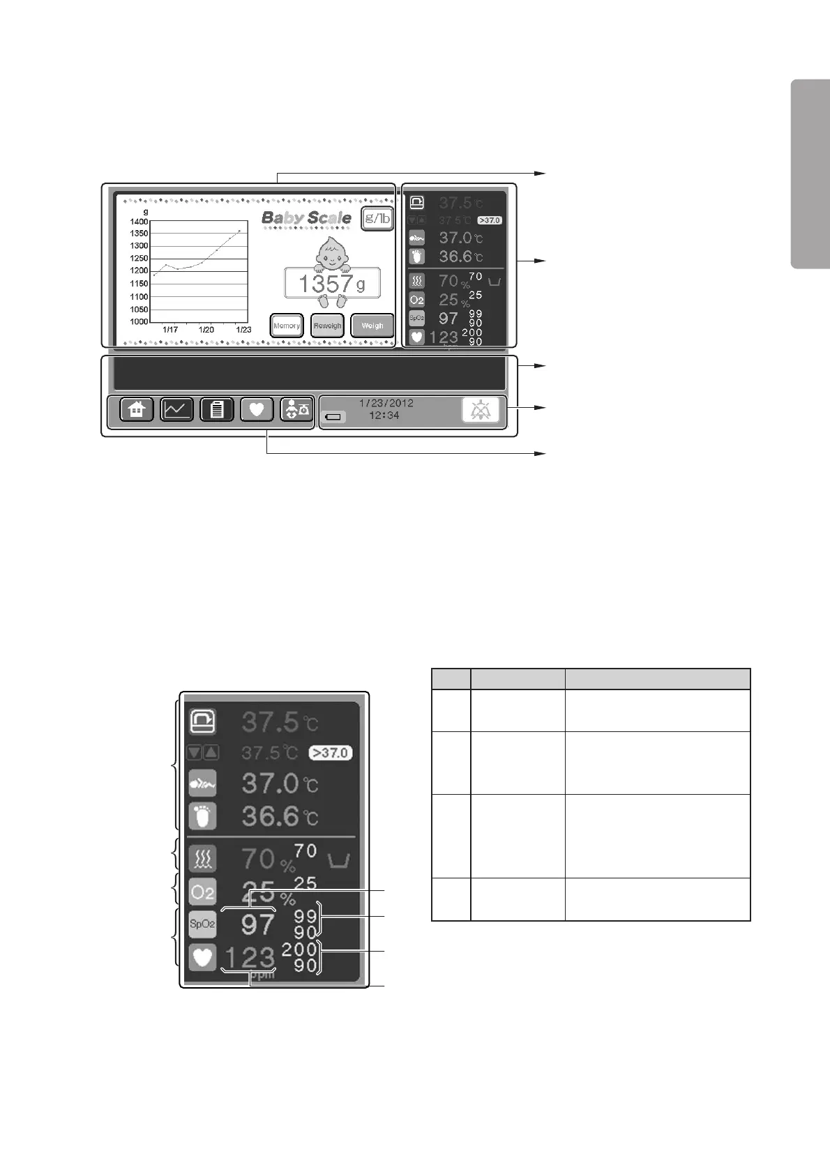 ❋ The temperature area, the relative humidity area, and the oxygen area are the same as those of the pulse