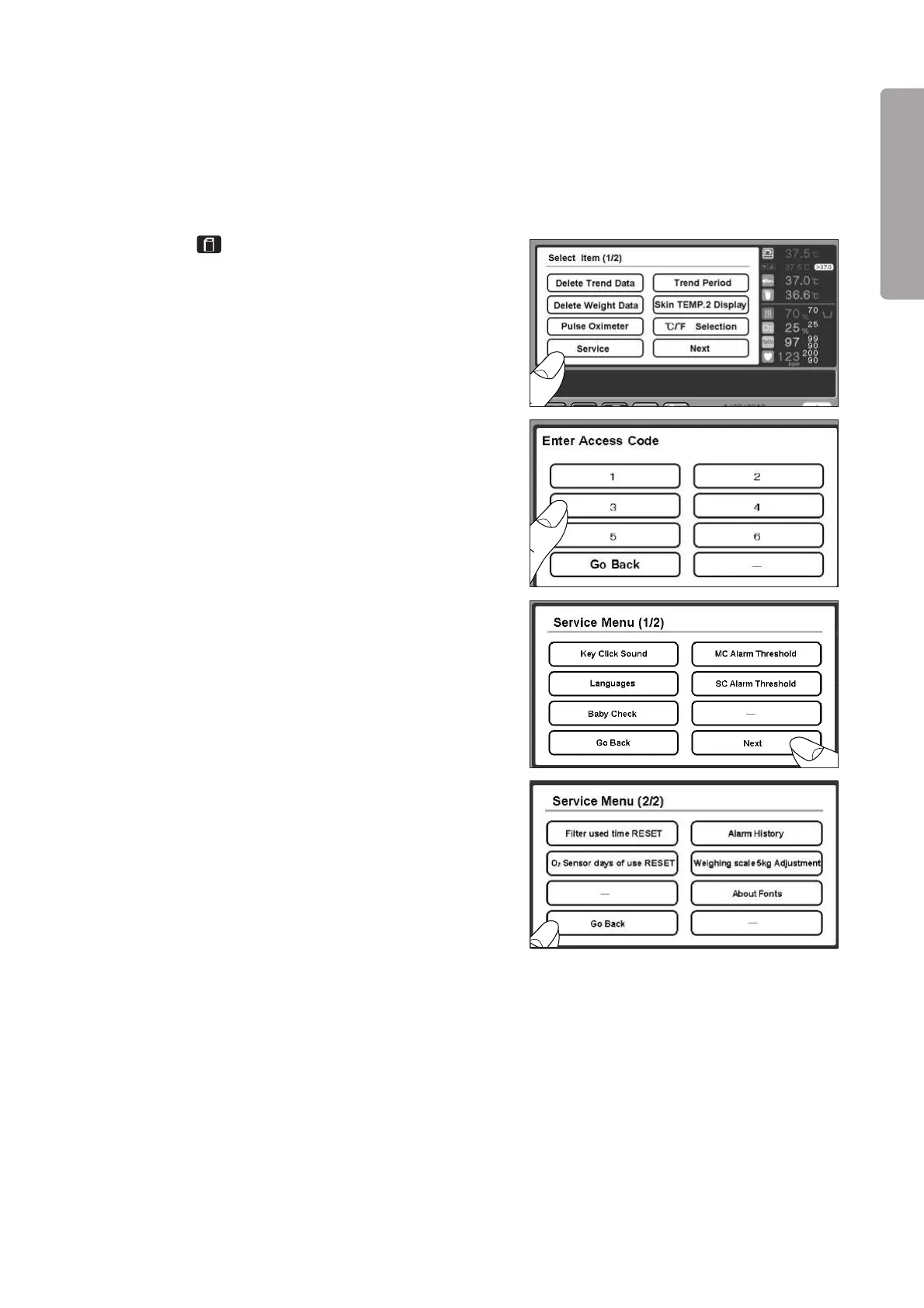 (4) The Service Menu screen (1/2) is displayed. Touch