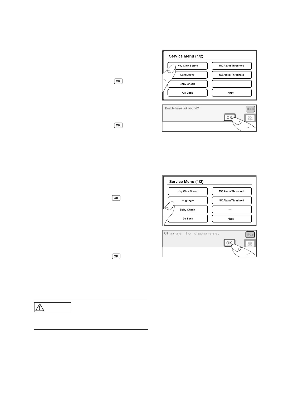 (1) Touch [Key Click Sound] on the Service Menu