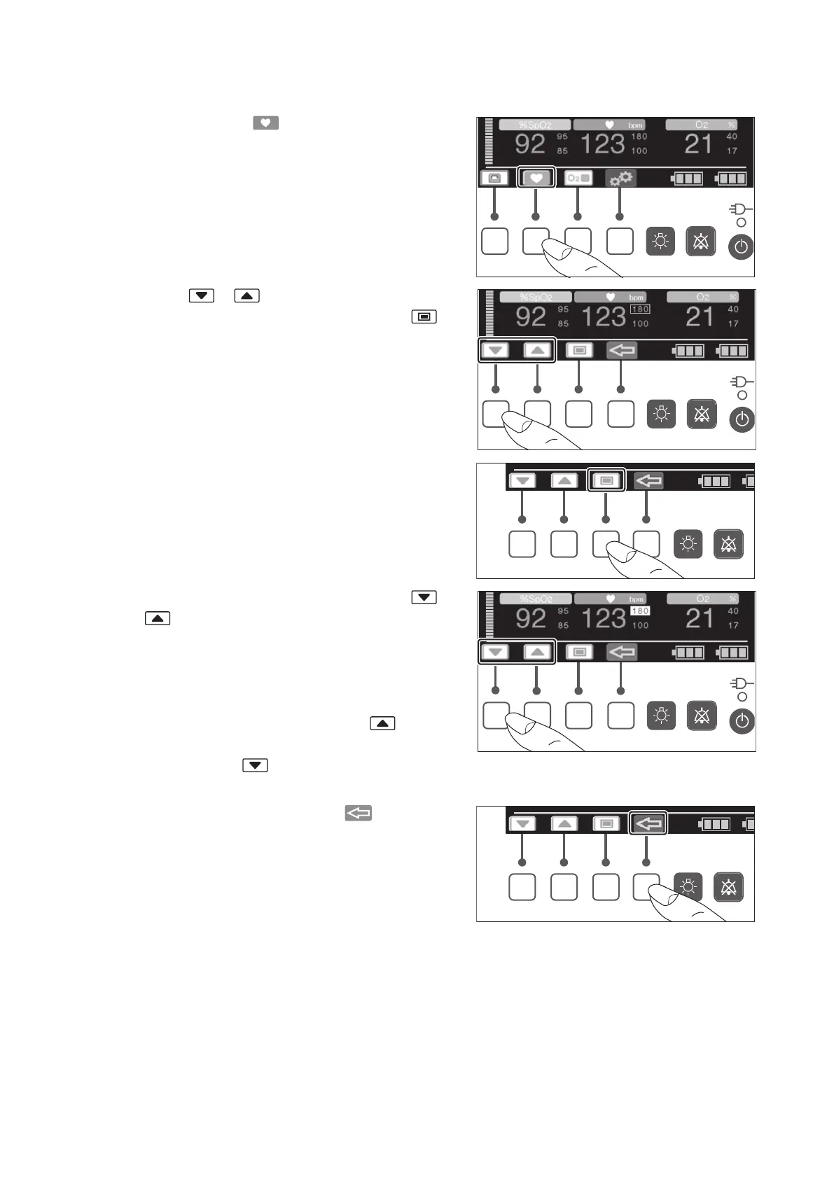 when 235bpm is displayed. To set the lower alarm