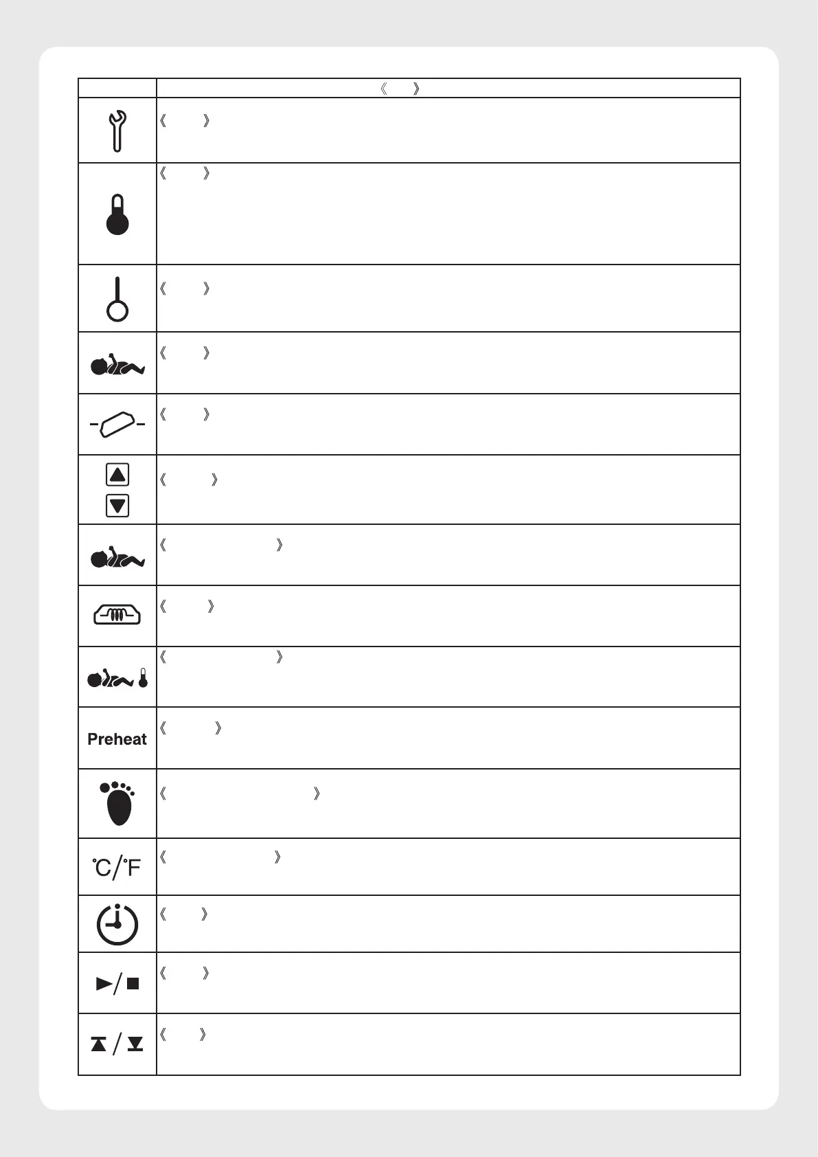 Indicates the preheat mode and the preheat mode switch.