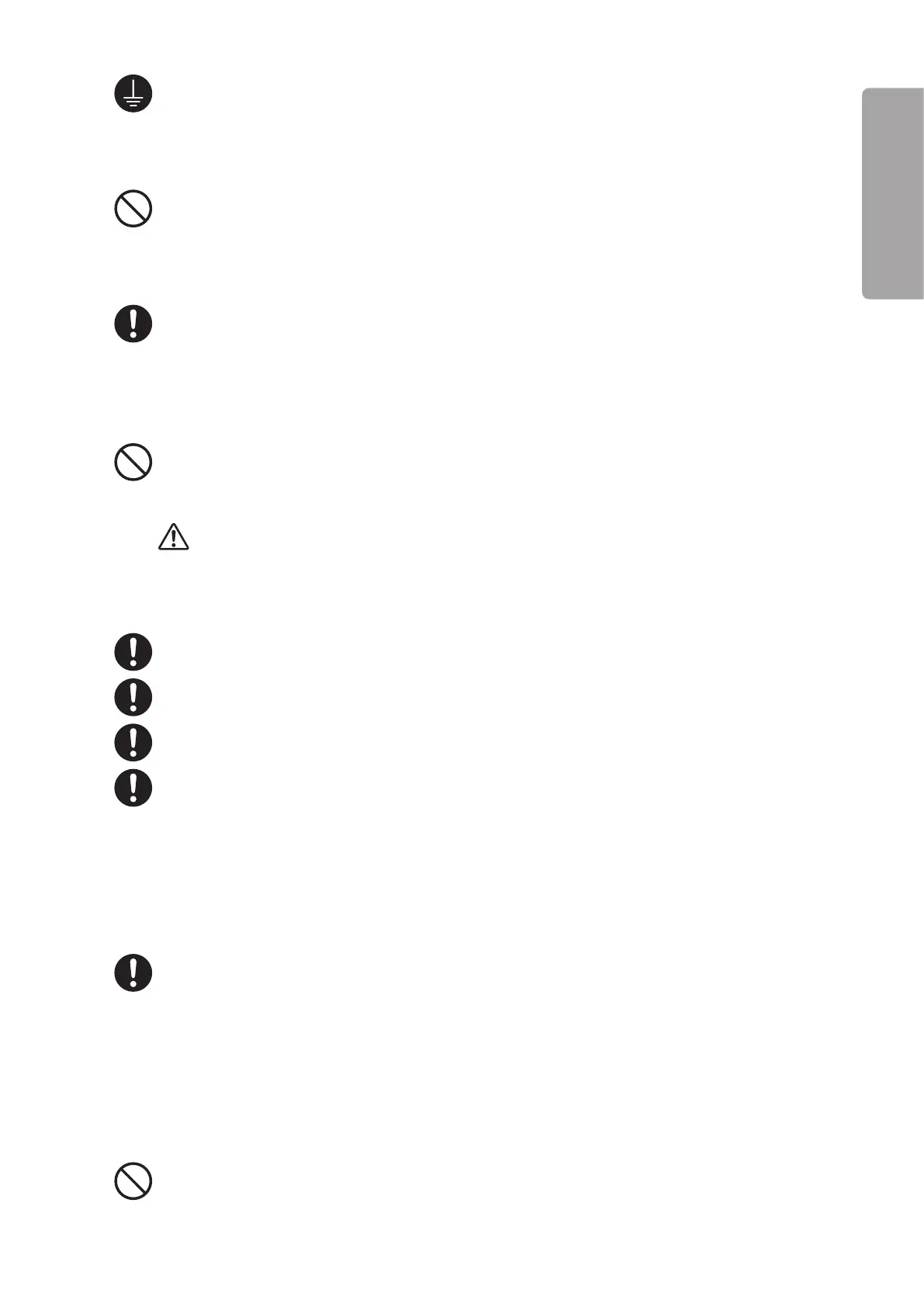 Otherwise, a leakage current may cause an electric shock. In order to complete the ground connection,