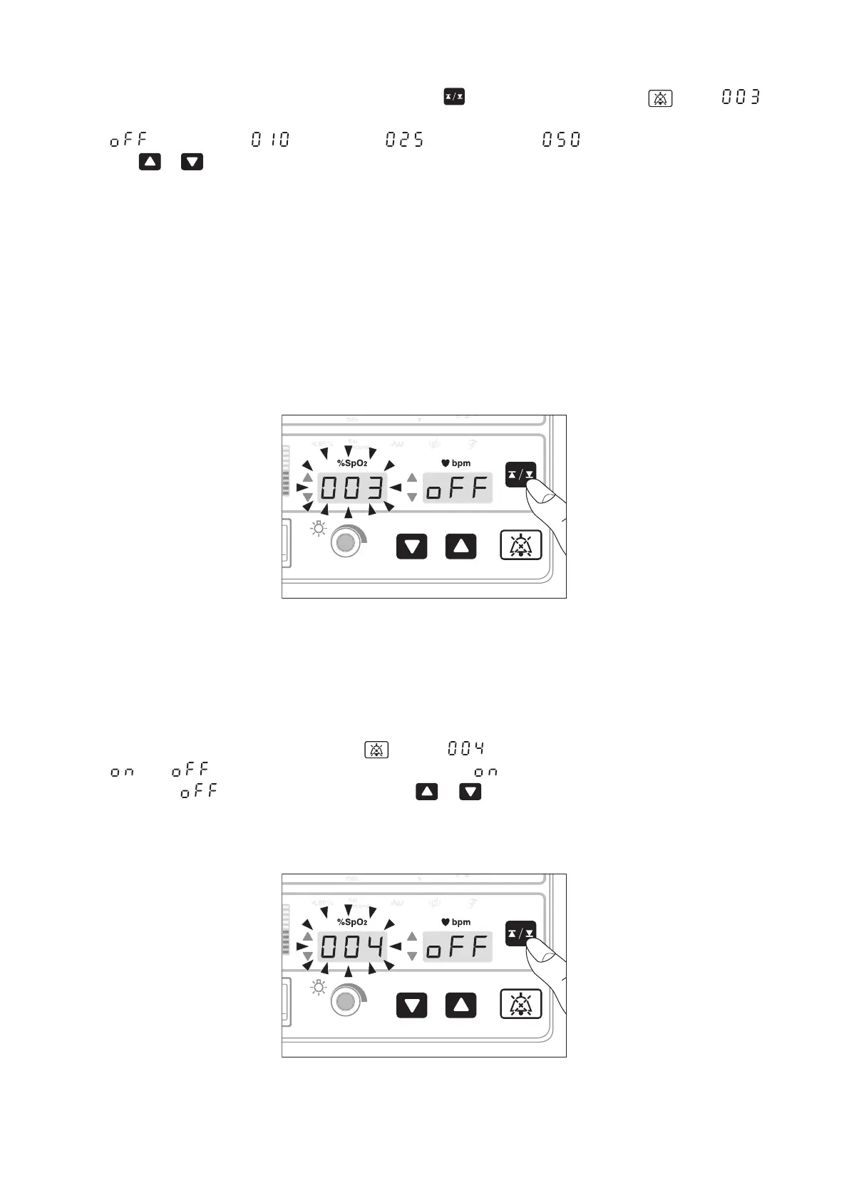 After setting the SatSeconds limit, press again. “ ” will appear on the SpO2 display and either