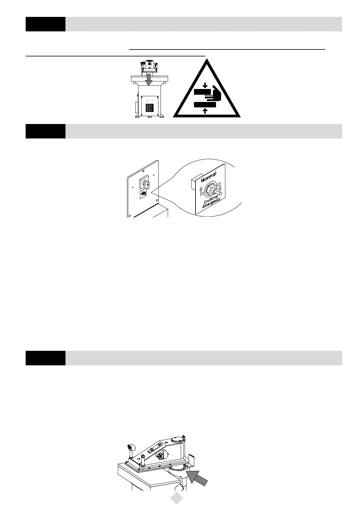 1) Lower the switch lever, placed on the electrical equipment box, to the Cutting Emergency position (Fig. 19).