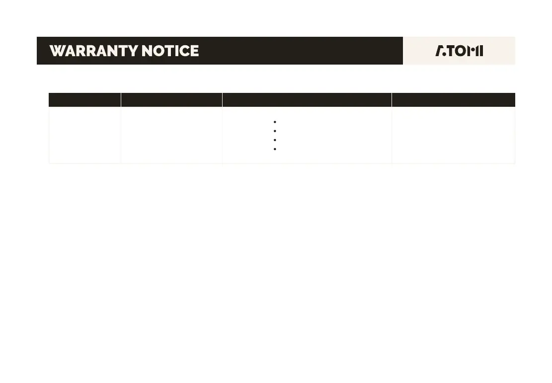 ATOMI warrants to the original purchaser that its ATOMI Product will be free from defects in materials and workmanship under normal use in the