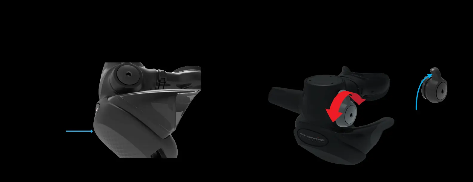 The quarter-turn manual override adjustment allows quick detuning for surf entries, jumping o a boat,