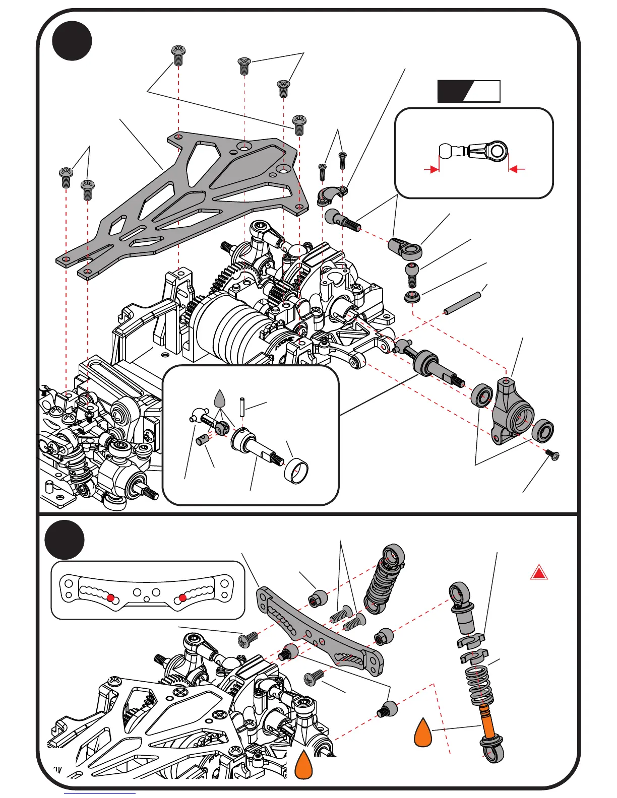 Atomic DRZ - Rear Assembly and Drivetrain; 20. Attaching Rear camber linkage; 21. Attaching Rear shocks tower