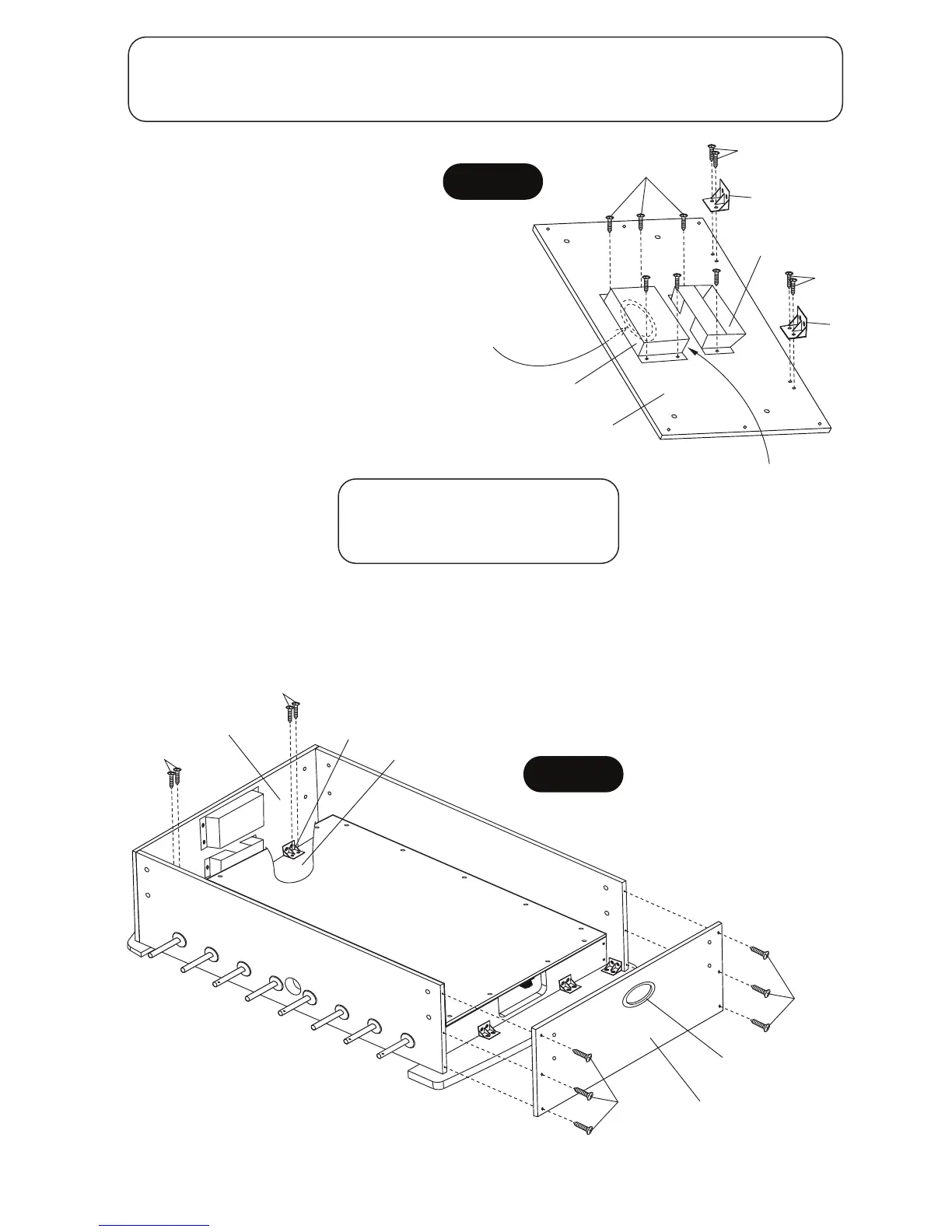 Attach previous assemblies from STEP 8 to the end of table cabinet using pre-drilled pilot holes with H7 Screws