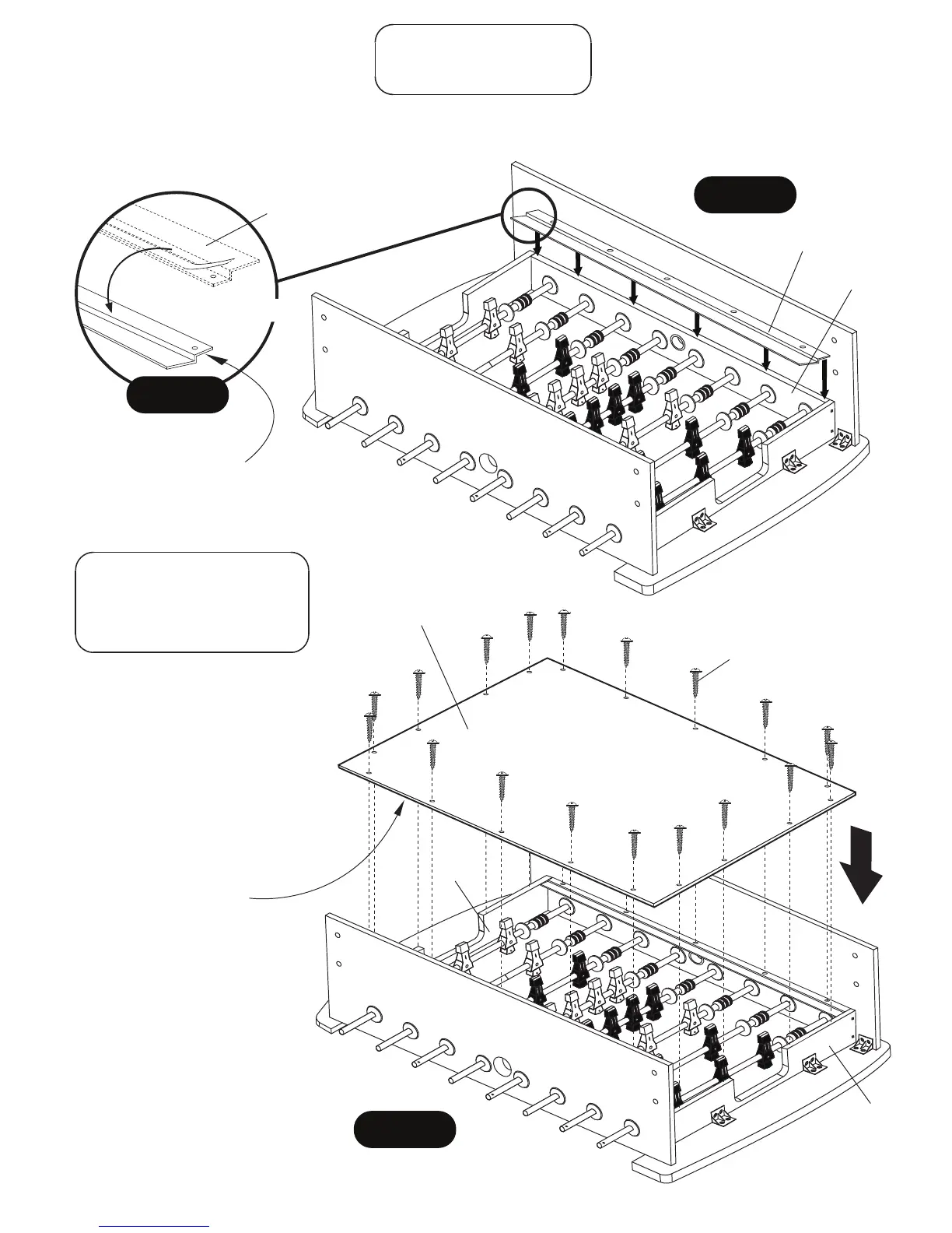 de la parte inferior de Borde de la Superficie de juego P12. Voltéelos y cuidadosamente colocarlos a lo largo de