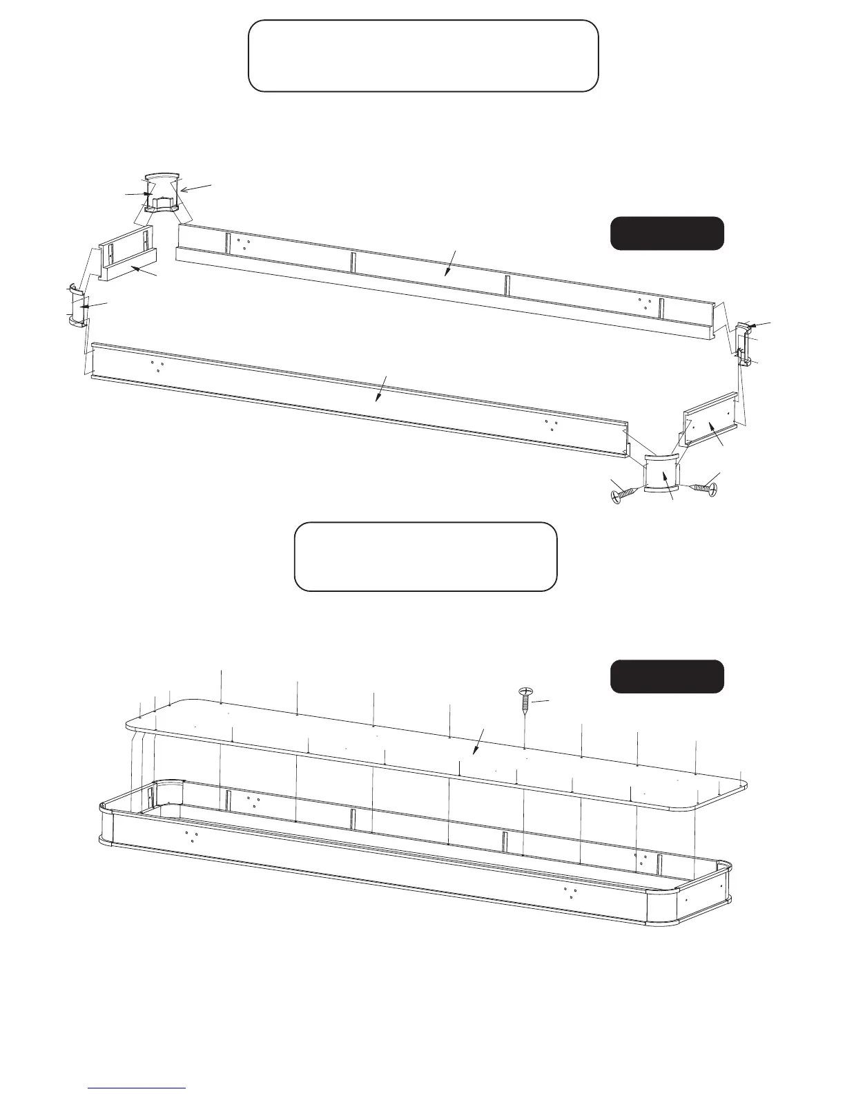 En una superficie nivelada y limpia, coloque boca abajo cada Riel Lateral P1, cada Riel del extremo P2,