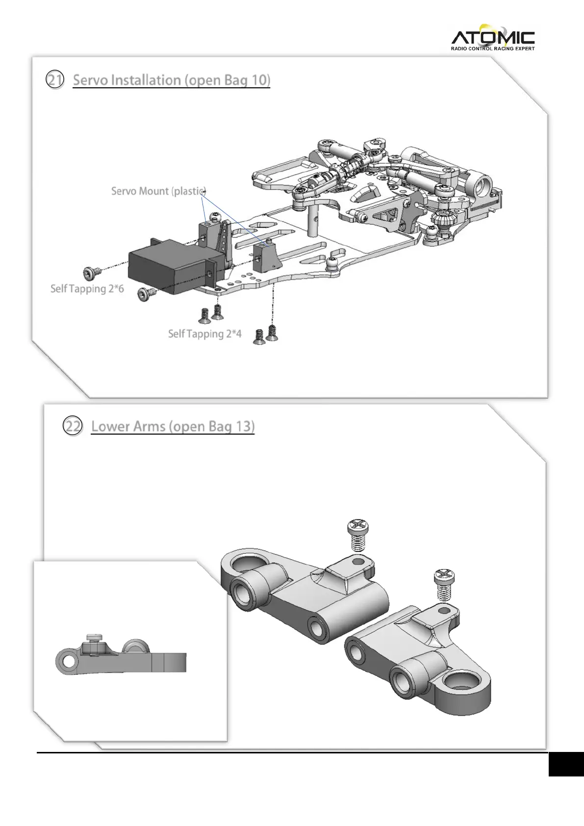 Atomic MRZ - Servo Installation; Upper Arm Mount Installation