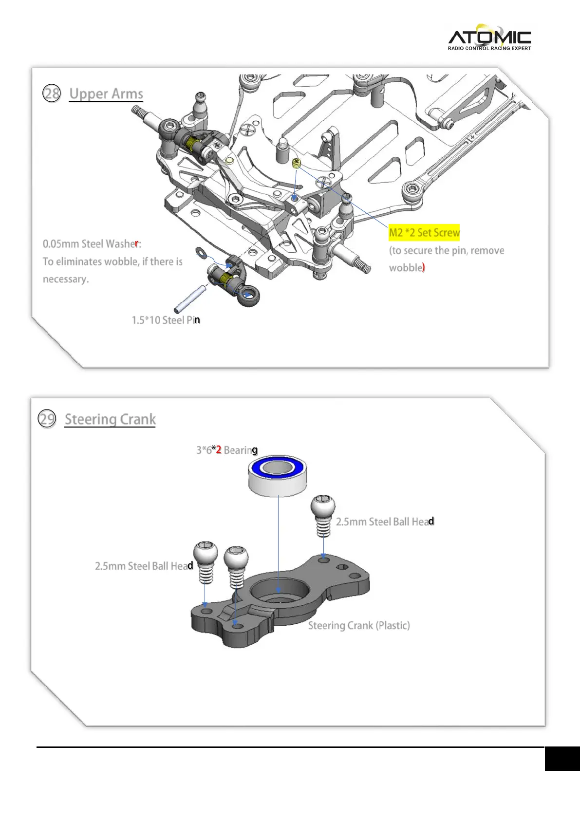 Atomic MRZ - Upper Arms Attachment; Steering Crank Assembly