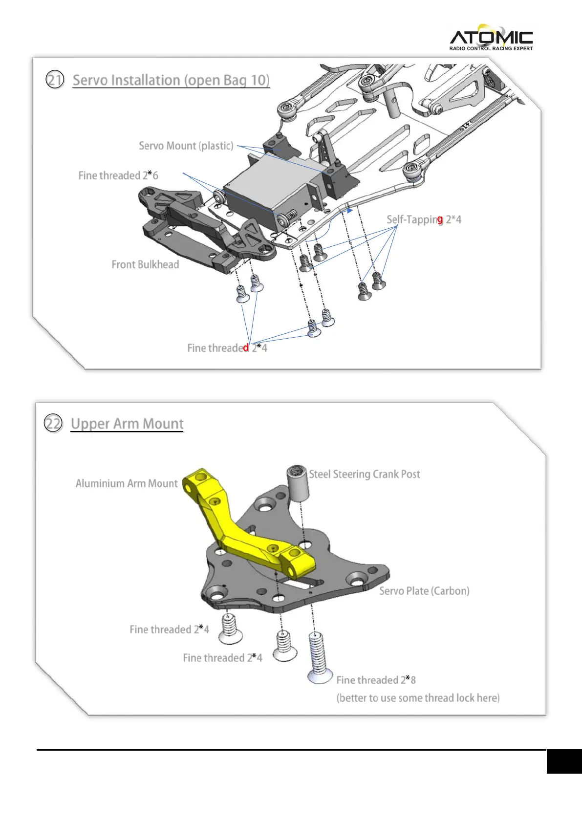 Atomic MRZ - Servo Installation; Upper Arm Mount Installation