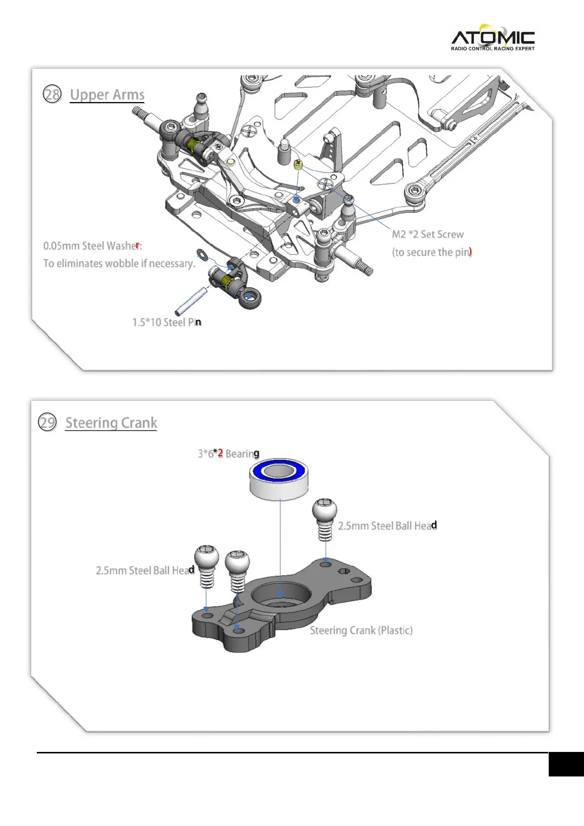 Atomic MRZ - Upper Arms Attachment; Steering Crank Assembly
