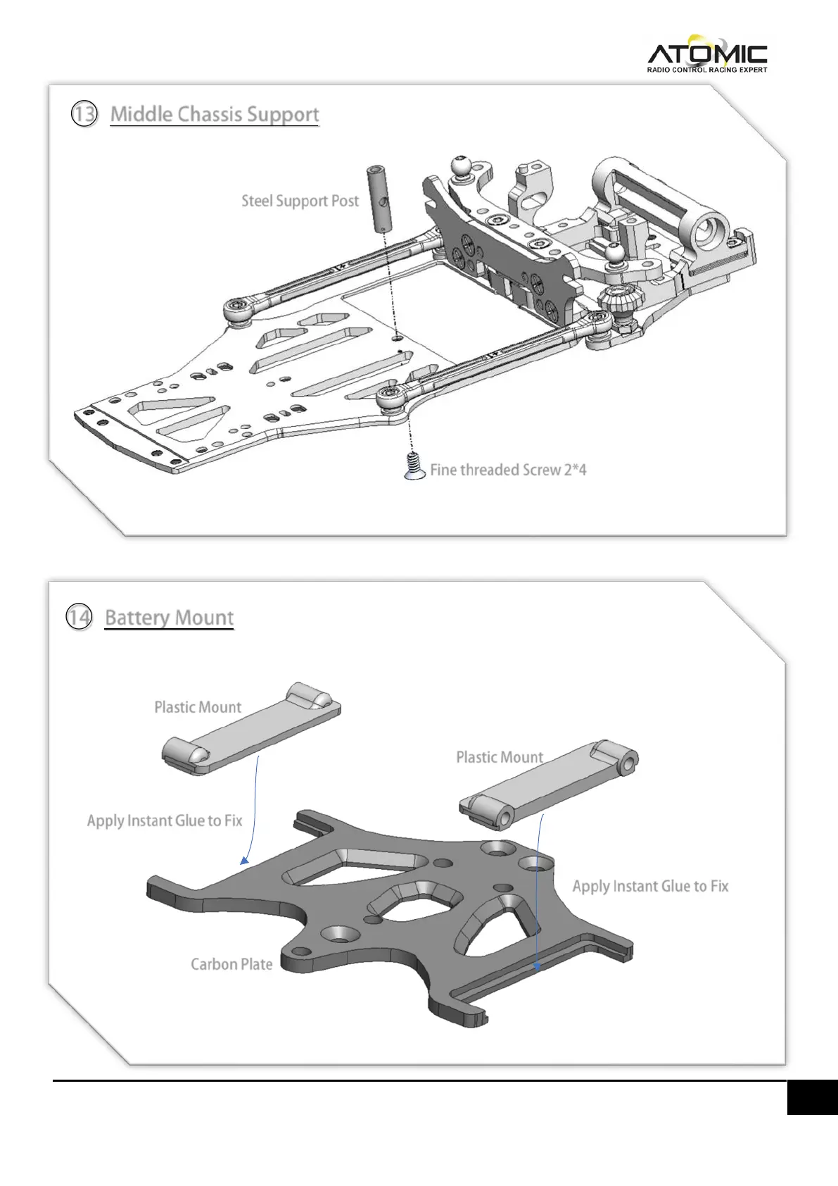 Atomic MRZ - Middle Chassis Support Installation; Battery Mount Assembly