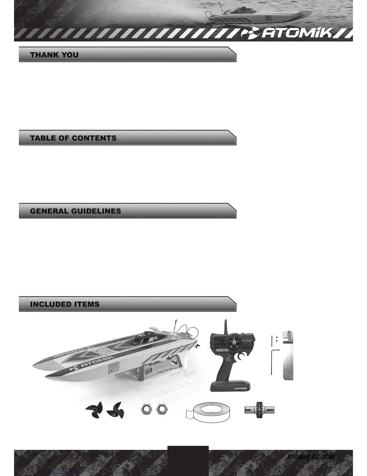 Thank you for purchasing the Atomik™ C1 34” RTR Electric Boat. This RTR Electric Boat was designed with both