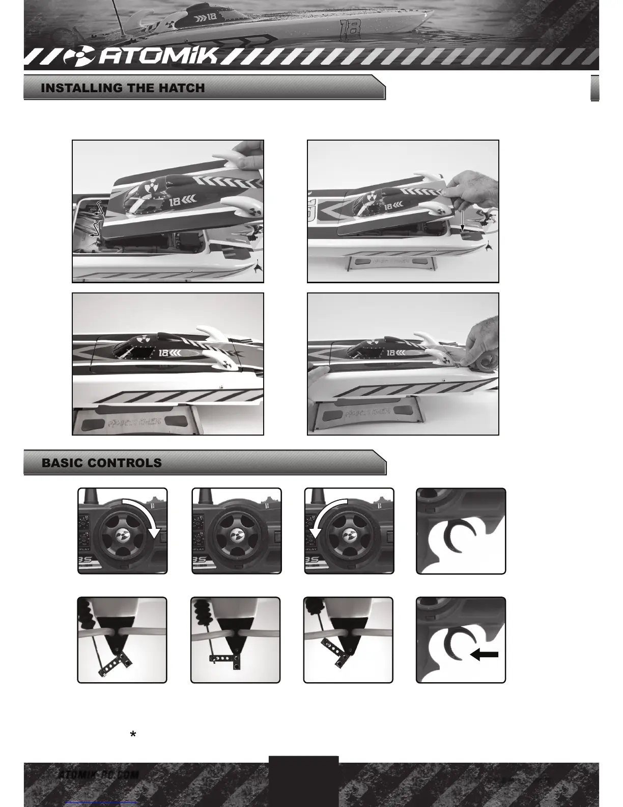 Secure the hatch by sliding the front pins into the holes at the front of the hull opening. The Hatch should drop easily
