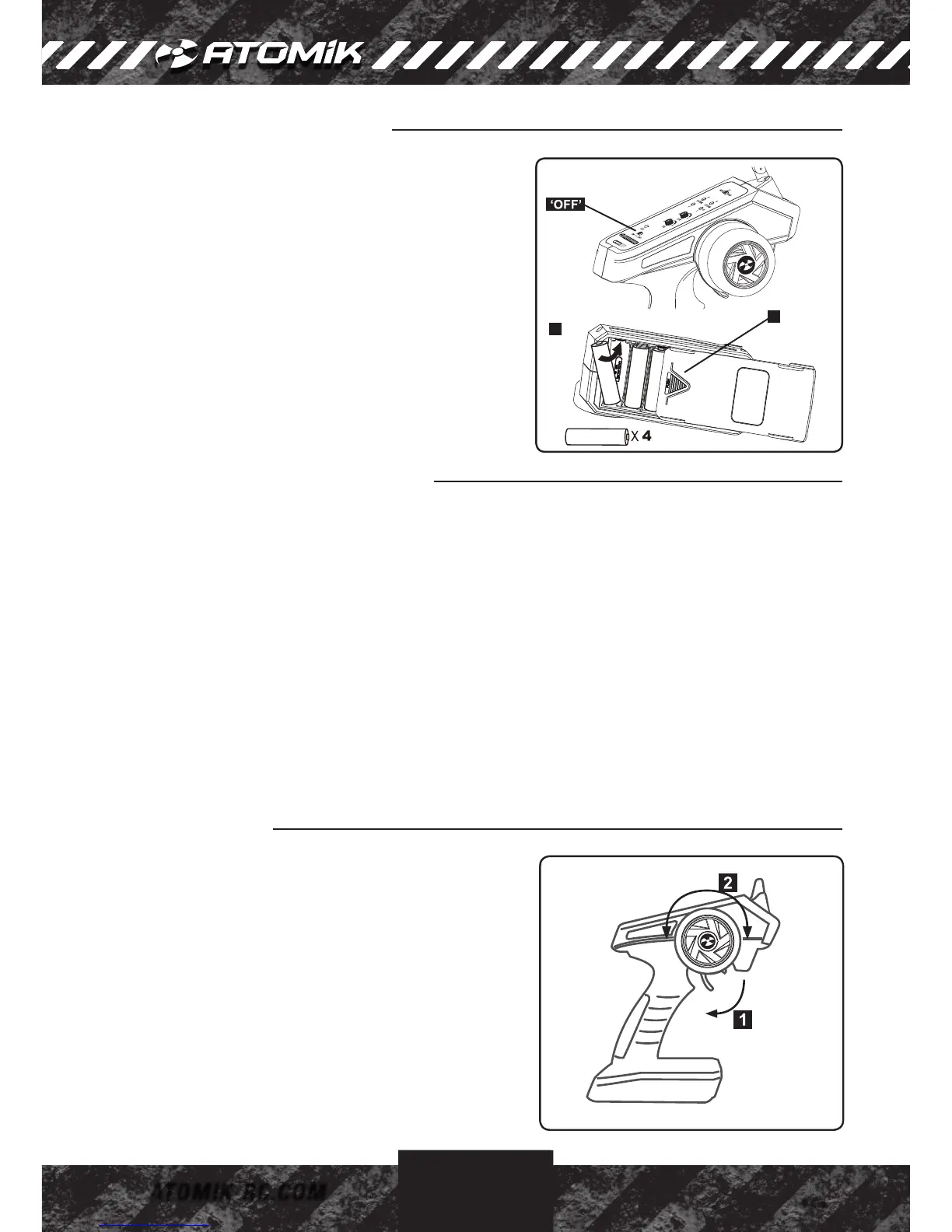 1. Make sure the transmitter ON/OFF switch is in the “OFF”