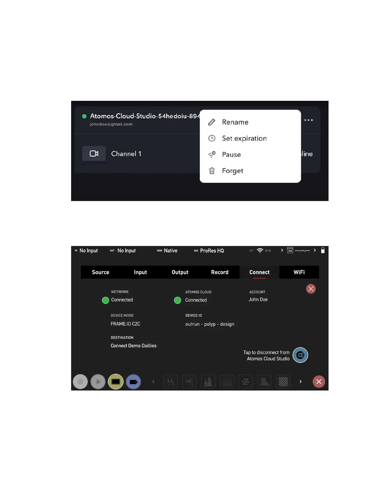 same name that you used in Atomos Cloud Studio, so that the device has the same