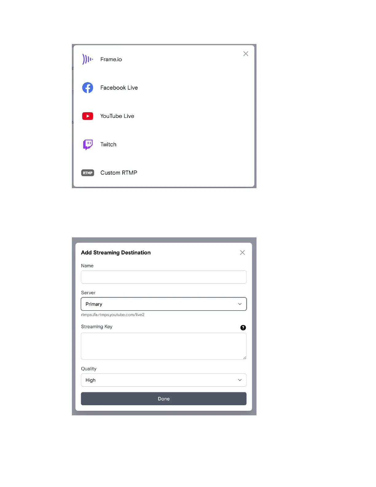 on Done to save the destination settings.