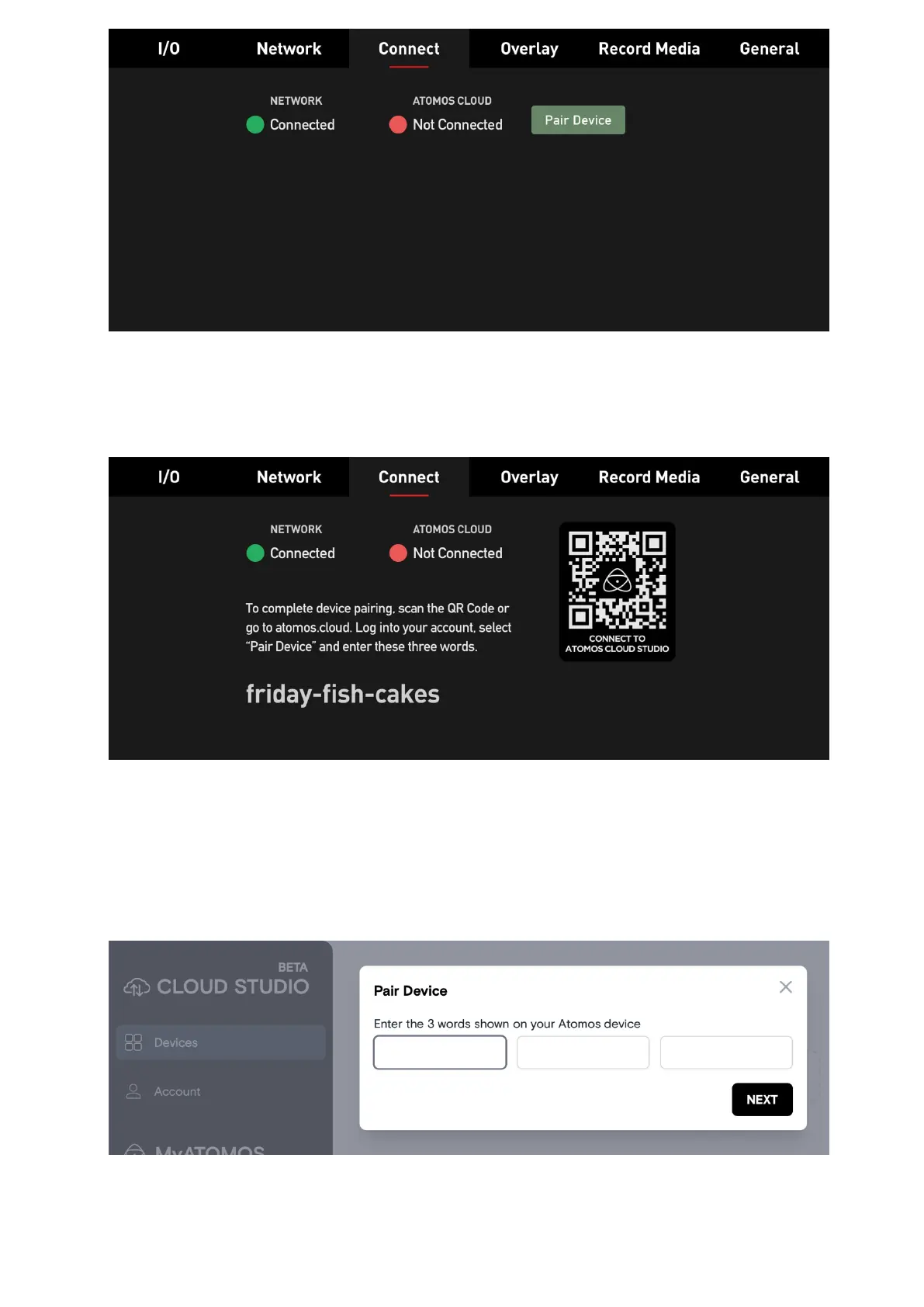 Press "Pair Device". The ZATO CONNECT now communicates with Atomos Cloud Studio