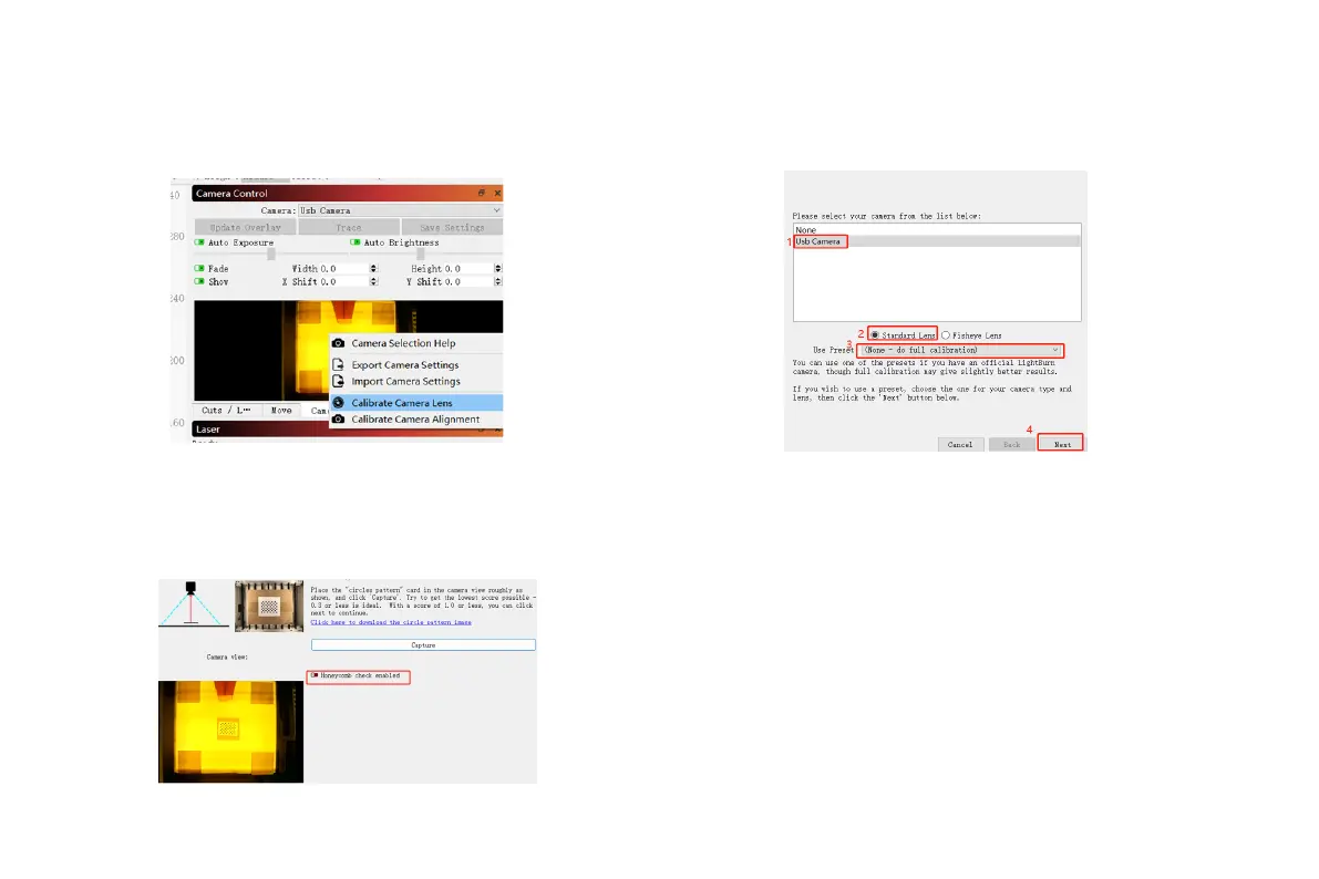 Contrôle de l’appareil photo et cliquez sur « Calibrer l’objectif de