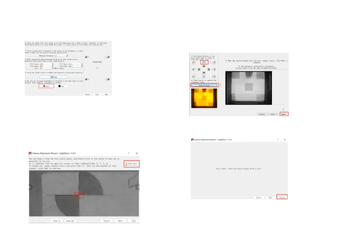 3.3.5 Cliquez sur « Démarrer » pour faire des 3.3.6 Une fois la gravure terminée, cliquez sur la position 1 ci-dessous pour