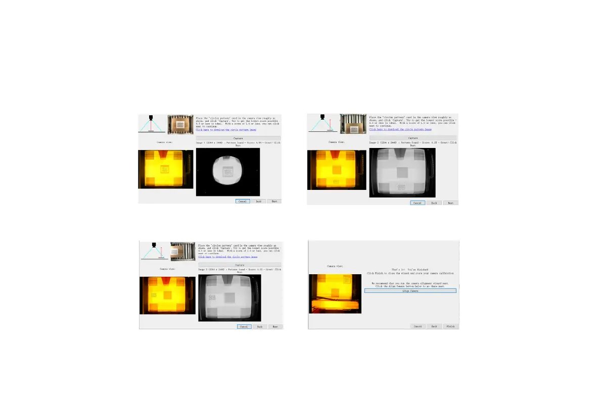 角共9个位置进行捕获,捕获的位置结果Score≤0.5 且图案轻微变形或无变形点击Next;若捕获不到图案,用2.6的方法微调镜头或者移动圆点卡片